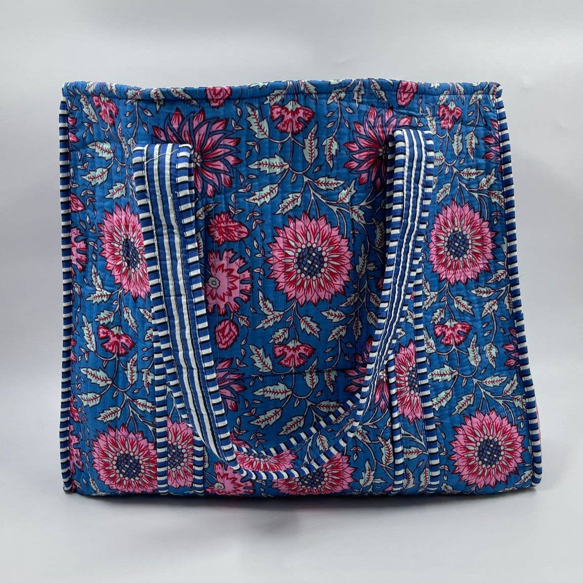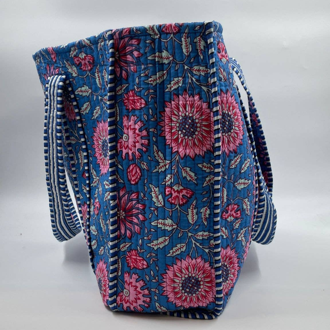 Boho Reversible Floral Tote Bag - Blue & Pink