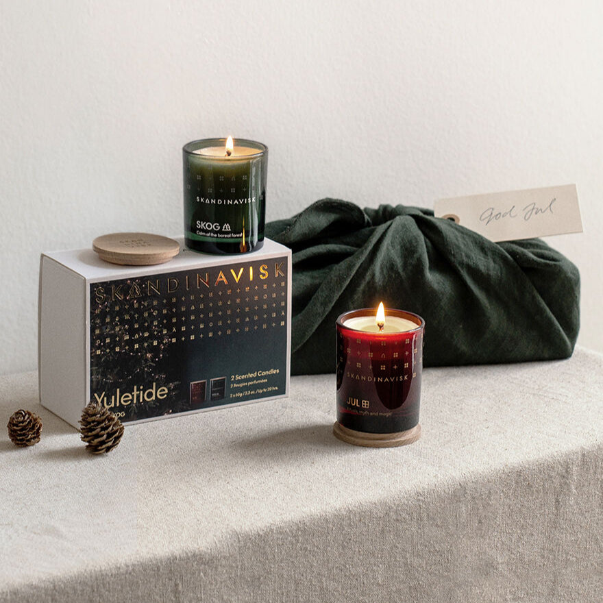 This playful Mini Candle Set brings festive cheer with two charming 65g candles in our signature JUL and SKOG scents. Each burns for around 20 hours, crafted from Swedish rapeseed wax for a cleaner, greener glow. Presented in a special edition seasonal design, it’s the perfect little gift to share warmth, joy, and cozy moments this yuletide.