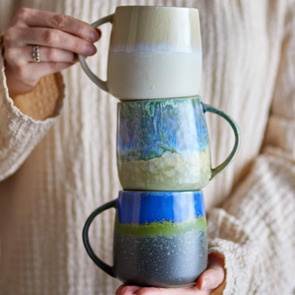 The Cloe Mug by Creative Collection are made of stoneware with reactive glaze in different shades. The rounded shapes and the calm play of colours create a harmonious expression where each cup is slightly different.