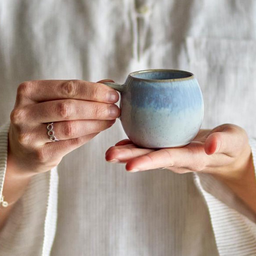 The Paula Espresso Cup by Bloomingville is an elegant and timeless addition to your coffee break. The cup is made of stoneware and has a beautiful blue tone with a rustic finish, adding charm to any table setting. The nature of the glaze may cause colour variations, making each cup unique.