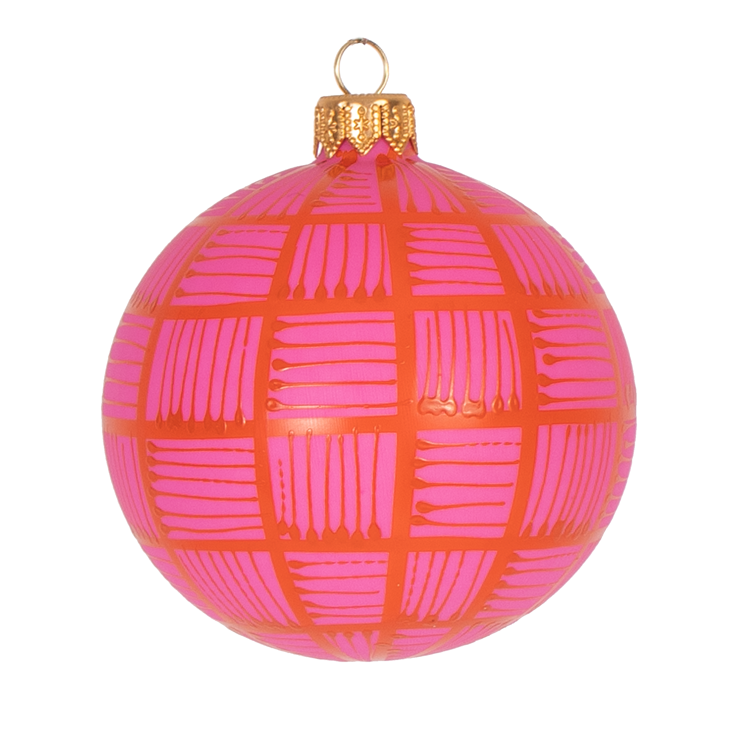 Studio THIE, a London-based design studio, collaborates with skilled artisans in Poland to handcraft Mouthblown Glass Christmas Bauble. The vibrant orange and pink geometric line design, created by founder Simon Thie, evokes joy and excitement, making each piece a unique and thoughtful addition to your holiday decor.