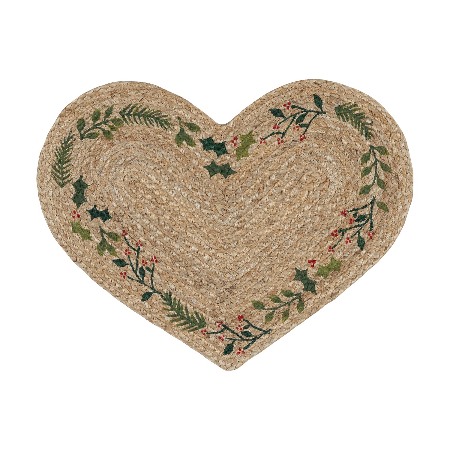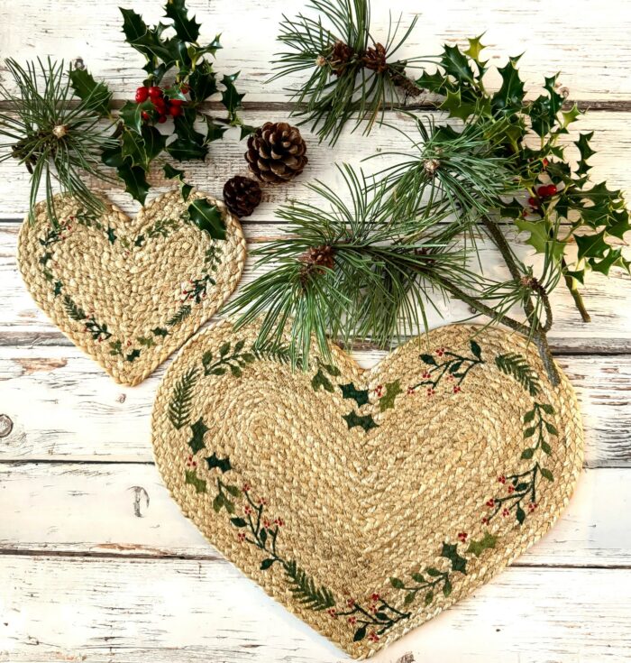Single Natural Jute Heart Coaster - Christmas