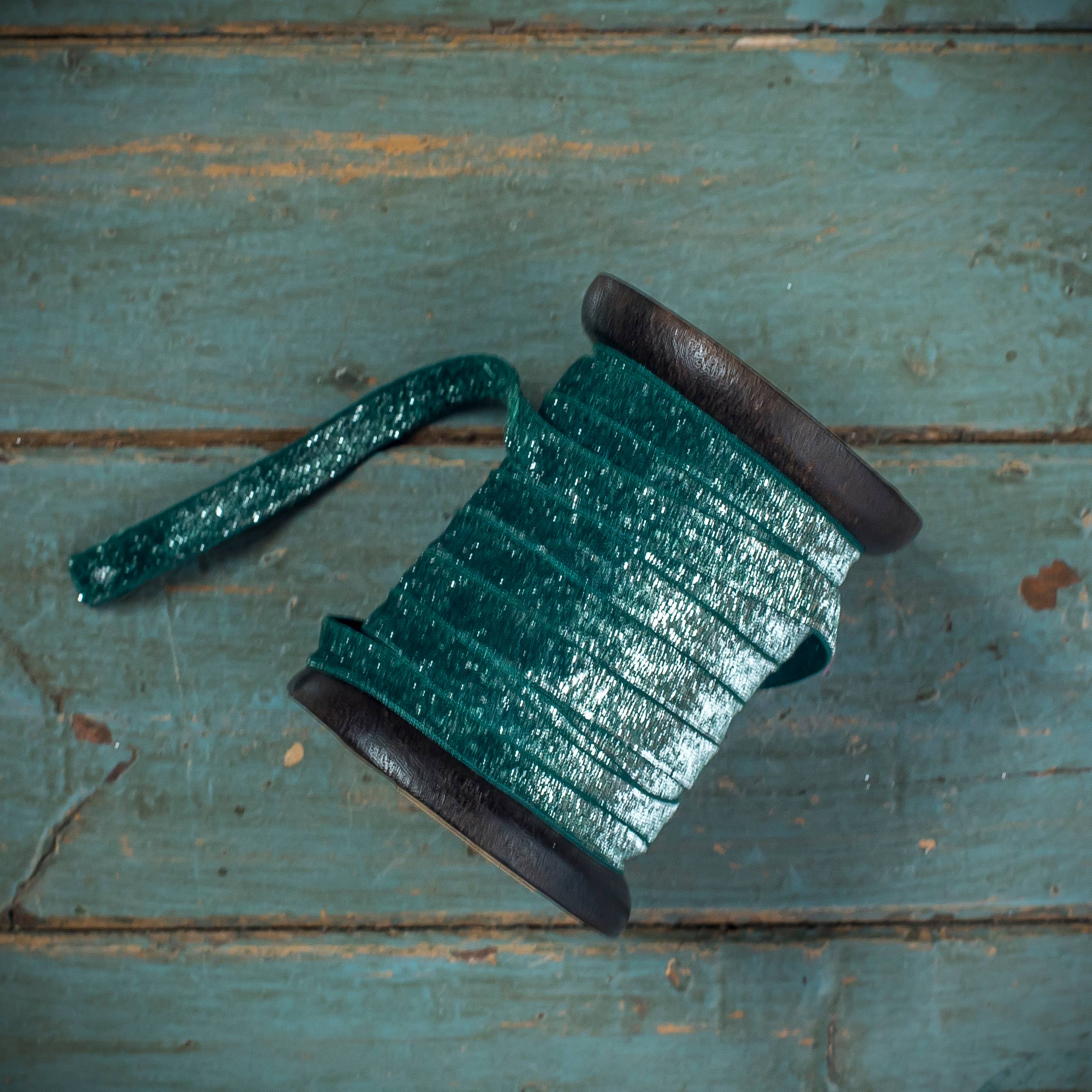 Dark Green & Silver Glitter Ribbon wrapped around a wooden spool.
