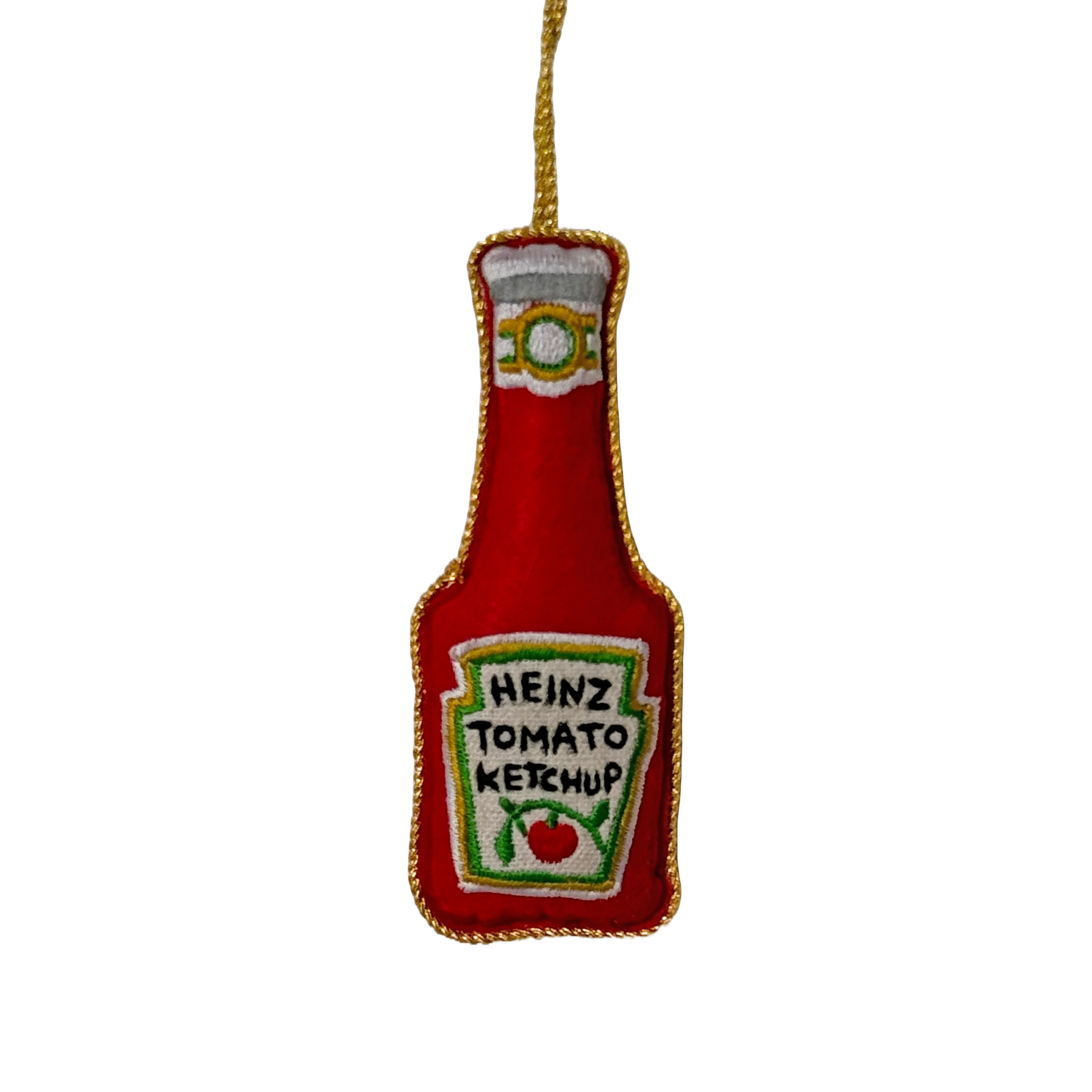 Experience the joy and excitement brought to you by Studio THIE's uniquely designed and thoughtfully made this Heinz Tomato Ketchup Christmas tree decoration is hand-embroidered and finished with a golden trim and hanging loop, perfect for any ketchup lover, created in collaboration with Heinz and designed in London. Trust in the contemporary lifestyle brand founded by Simon Thie to add a touch of inspiration to your home.