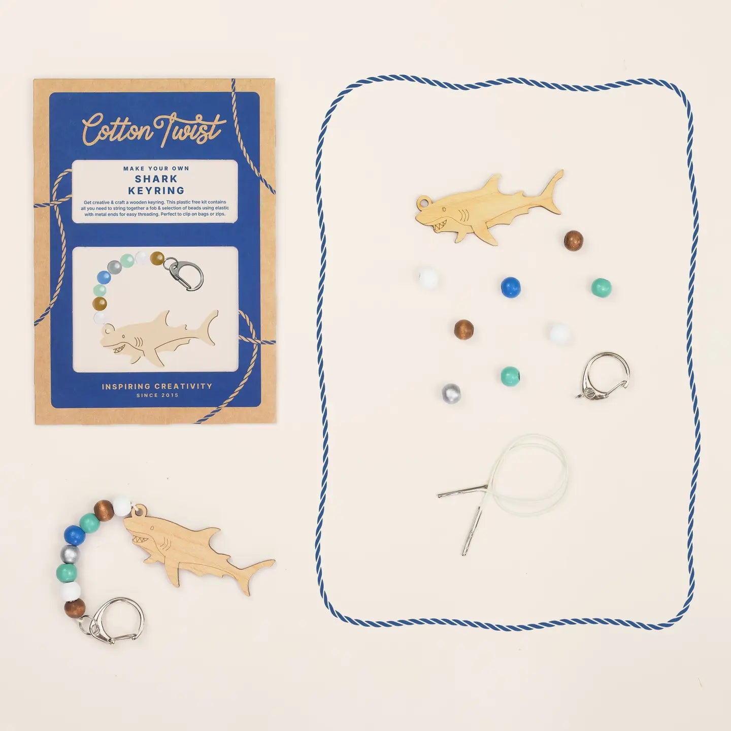 Children can construct their solid maple wood shark keyring using the elastic & spherical beads provided. The elastic comes with metal ends to help children add beads with ease, & the keyring mechanism has a simple catch. In a bid to banish plastic from our homes, Cotton Twist products are lovingly assembled by hand, & all components are as good as we can possibly make them.