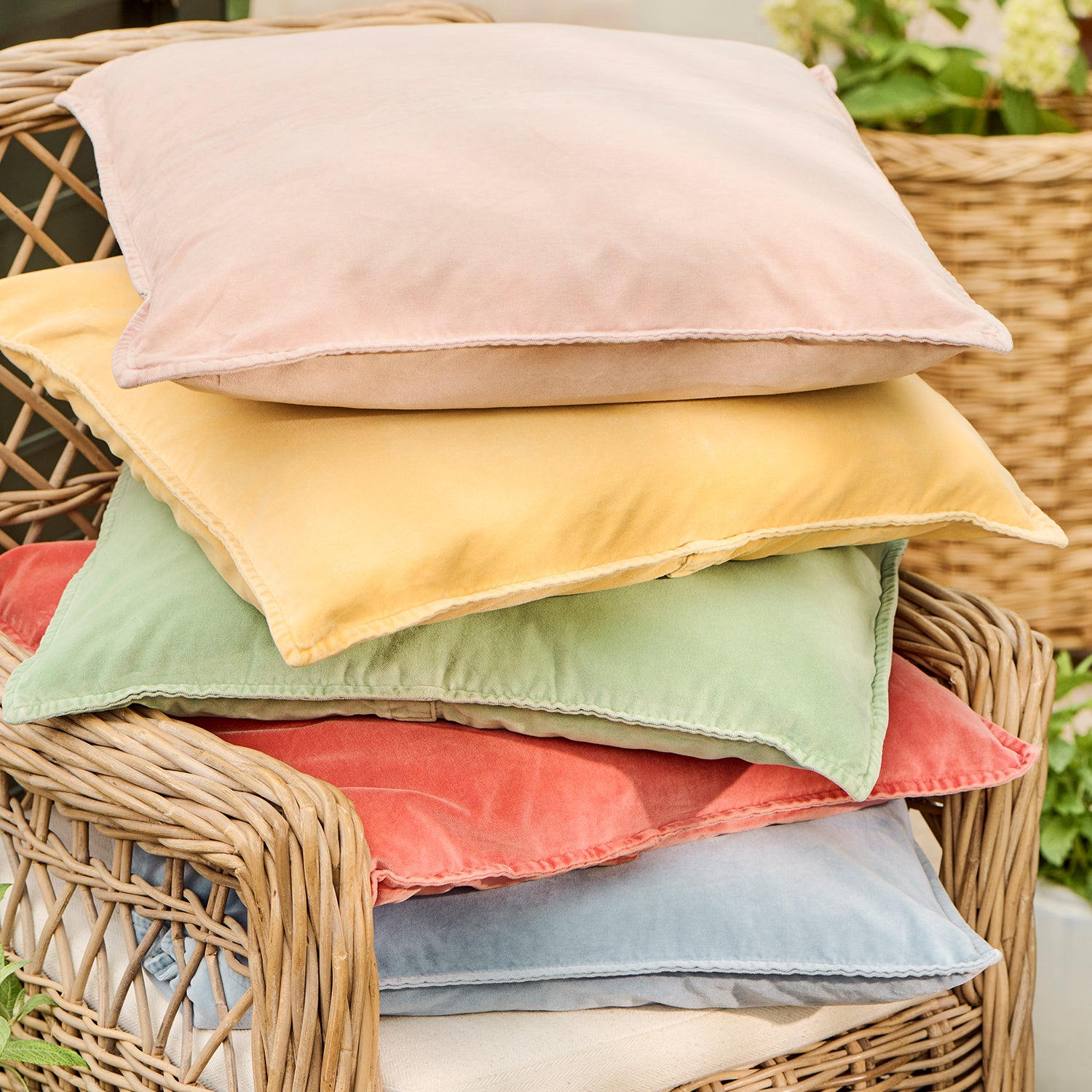 Velvet cushion with feather insert by IB Laursen. Gorgeously soft, in a fab range of colours to complement your home and style. Add a pop of colour to minimalist space, or dress up to your maximalist desire! We love these cushions for layered beds, comfy sofas and of course, building pillow forts!