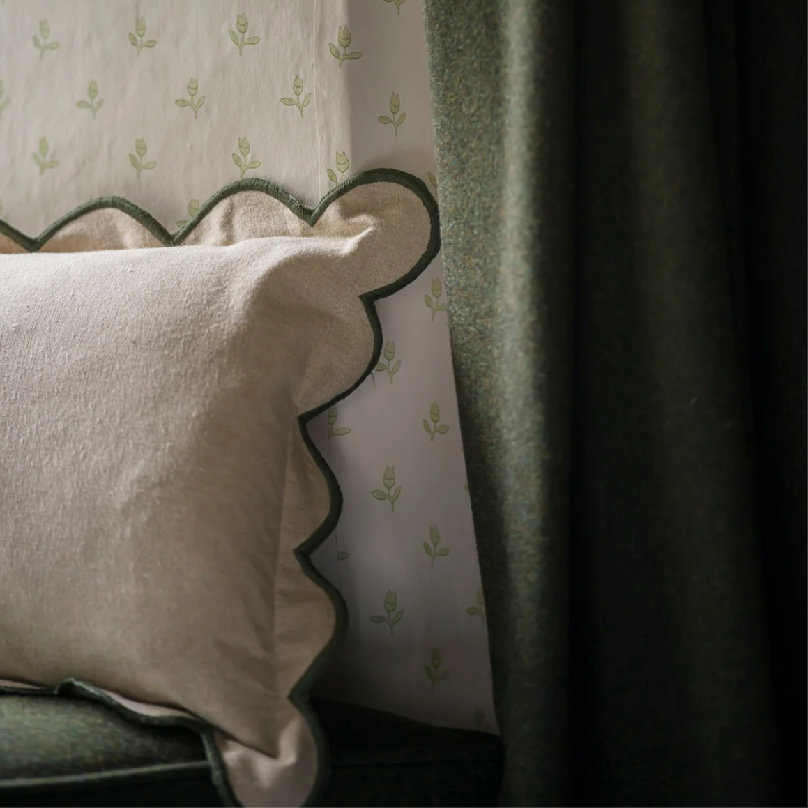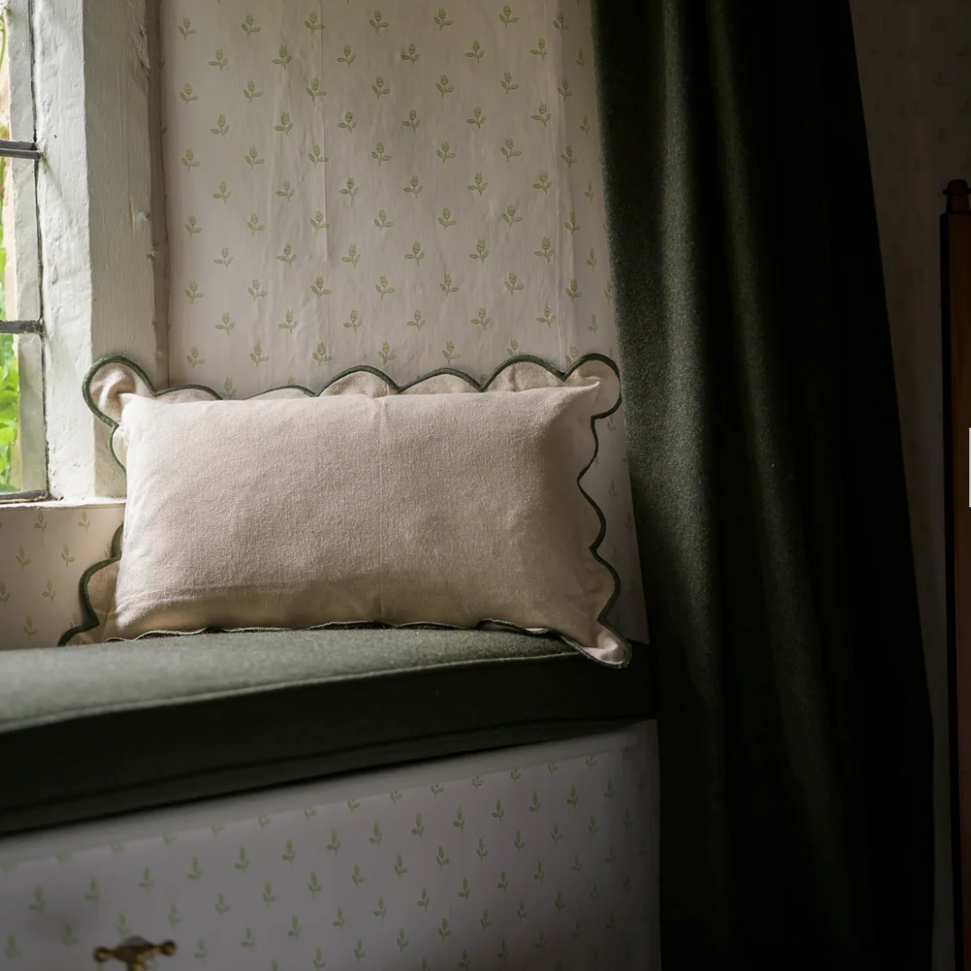 This elegant scalloped cushion layers so beautifully with our velvets on a sofa, bed or occasional chair.