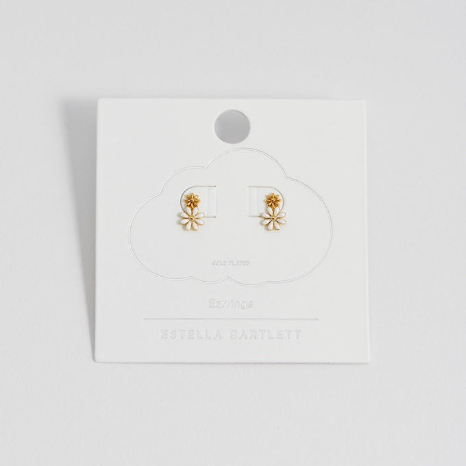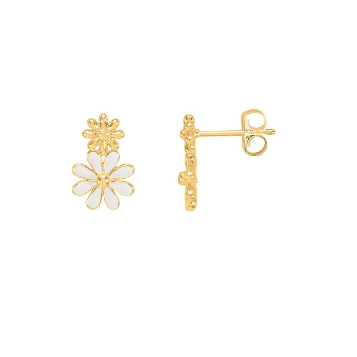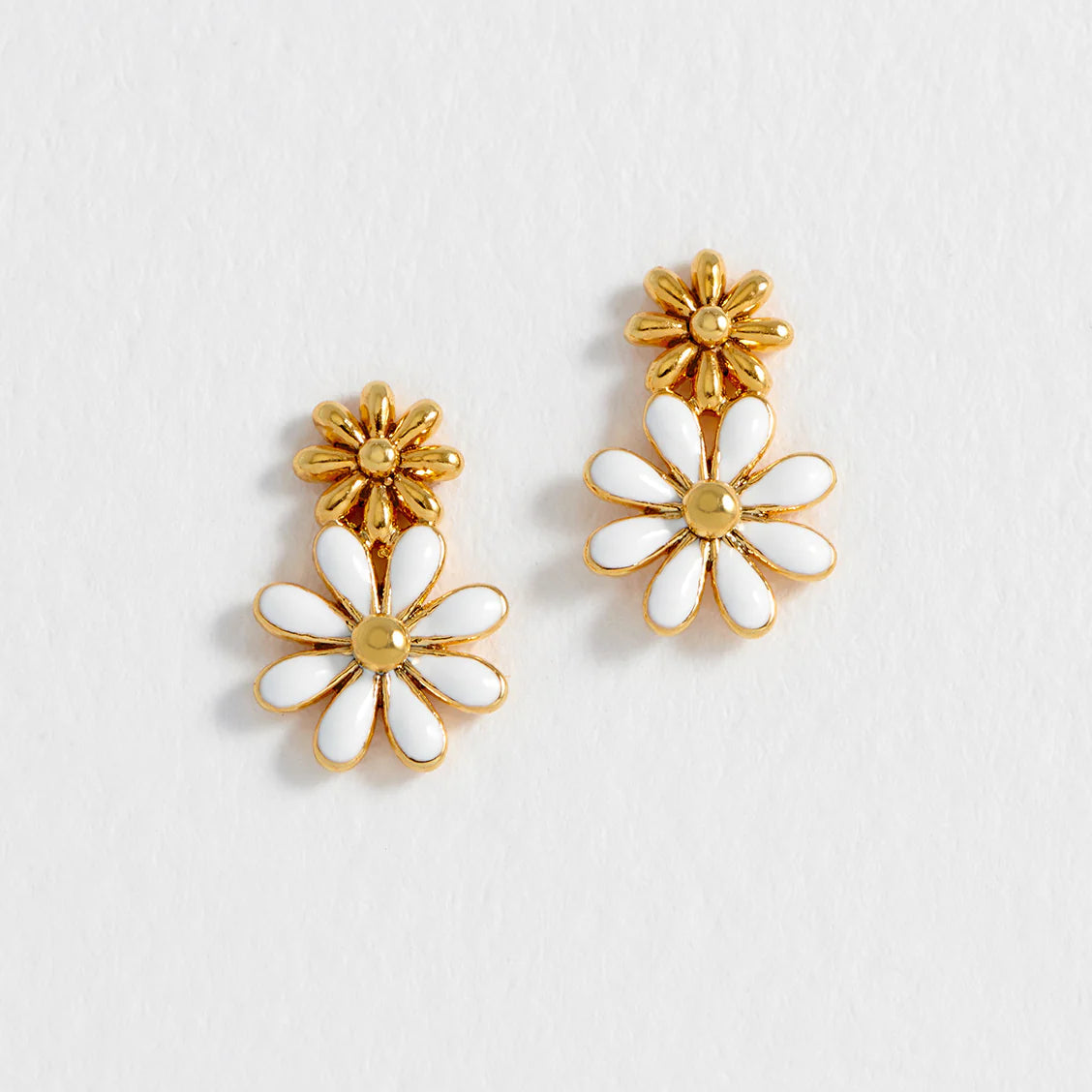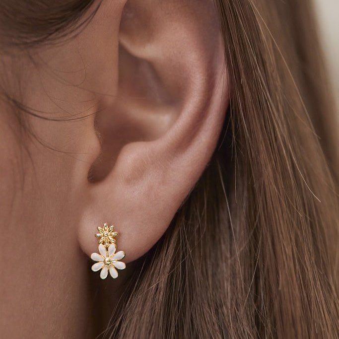 Add a fresh touch to your look with our White Enamel Double Flower Studs. With two enamelled white flowers stacked in a delicate layered design, these studs bring a subtle yet elegant flair to any jewellery collection.