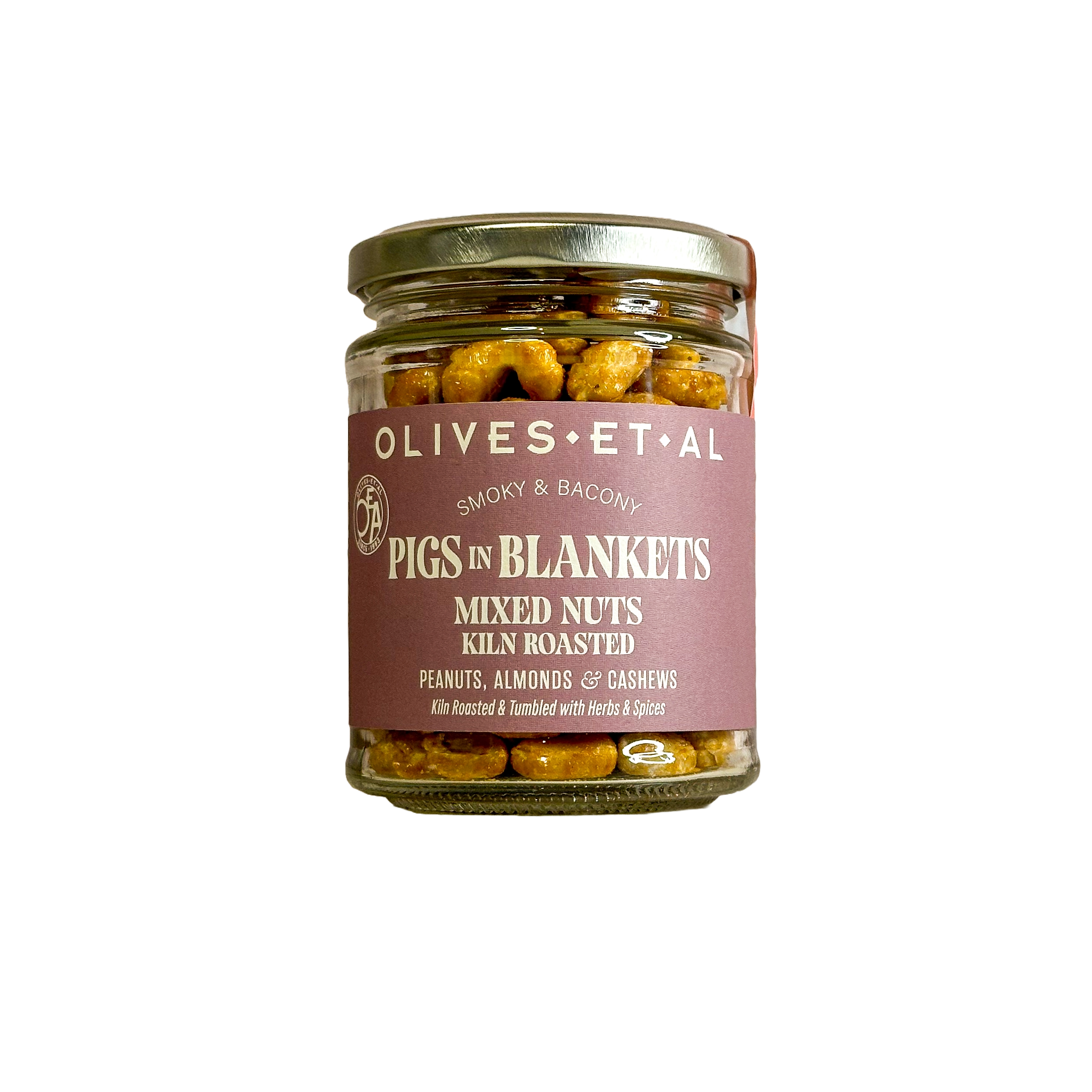 Kiln Roasted Peanuts, Cashews and Almonds tumbled in herbs & spices with a smoky, bacony flavour.