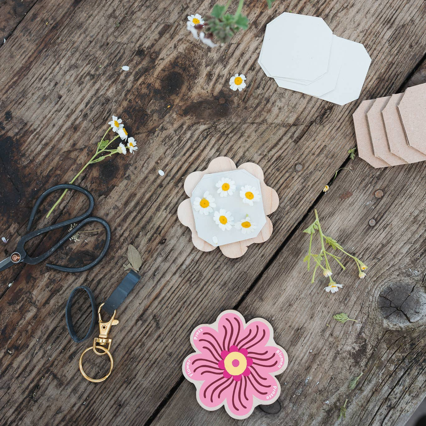 A mini flower press - perfect for little hands! A fun and functional take on a keyring which makes a novel gift for young and old.