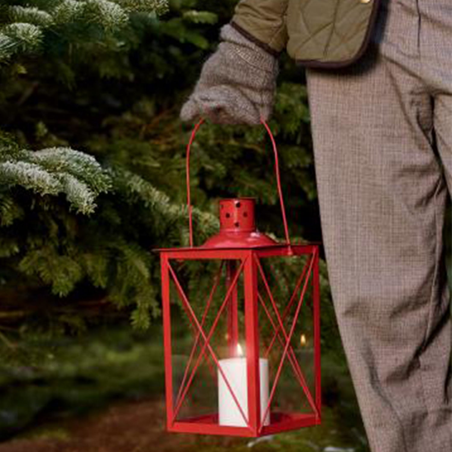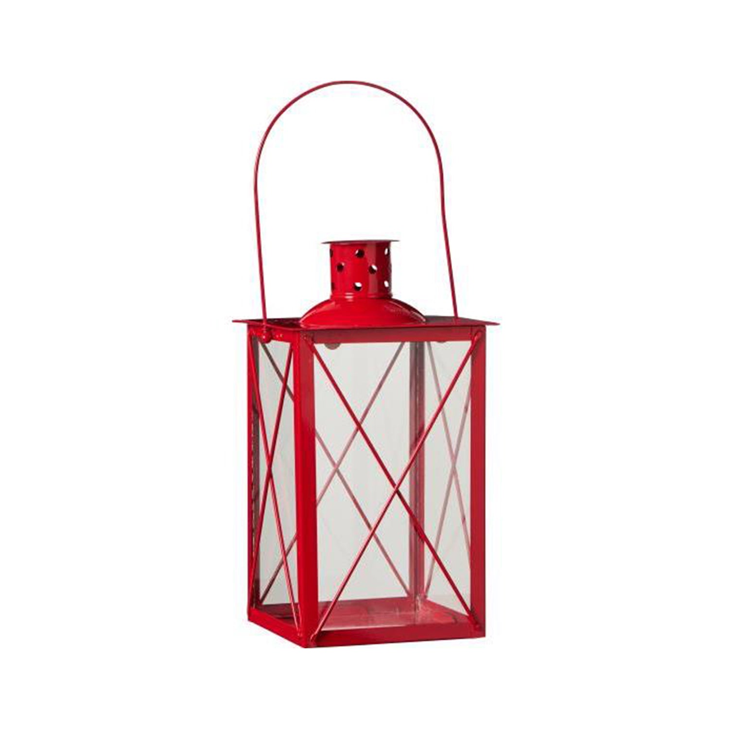 Large red square candle holder lantern made of metal and glass. A fantastic statement piece, use to display and burn candles year round. Take outside to accessorise outdoor meals (but make sure to bring them back inside once you've finished), place in cosy corners on shelves. Lit or unlit, these are sure to add character and personality to any space.