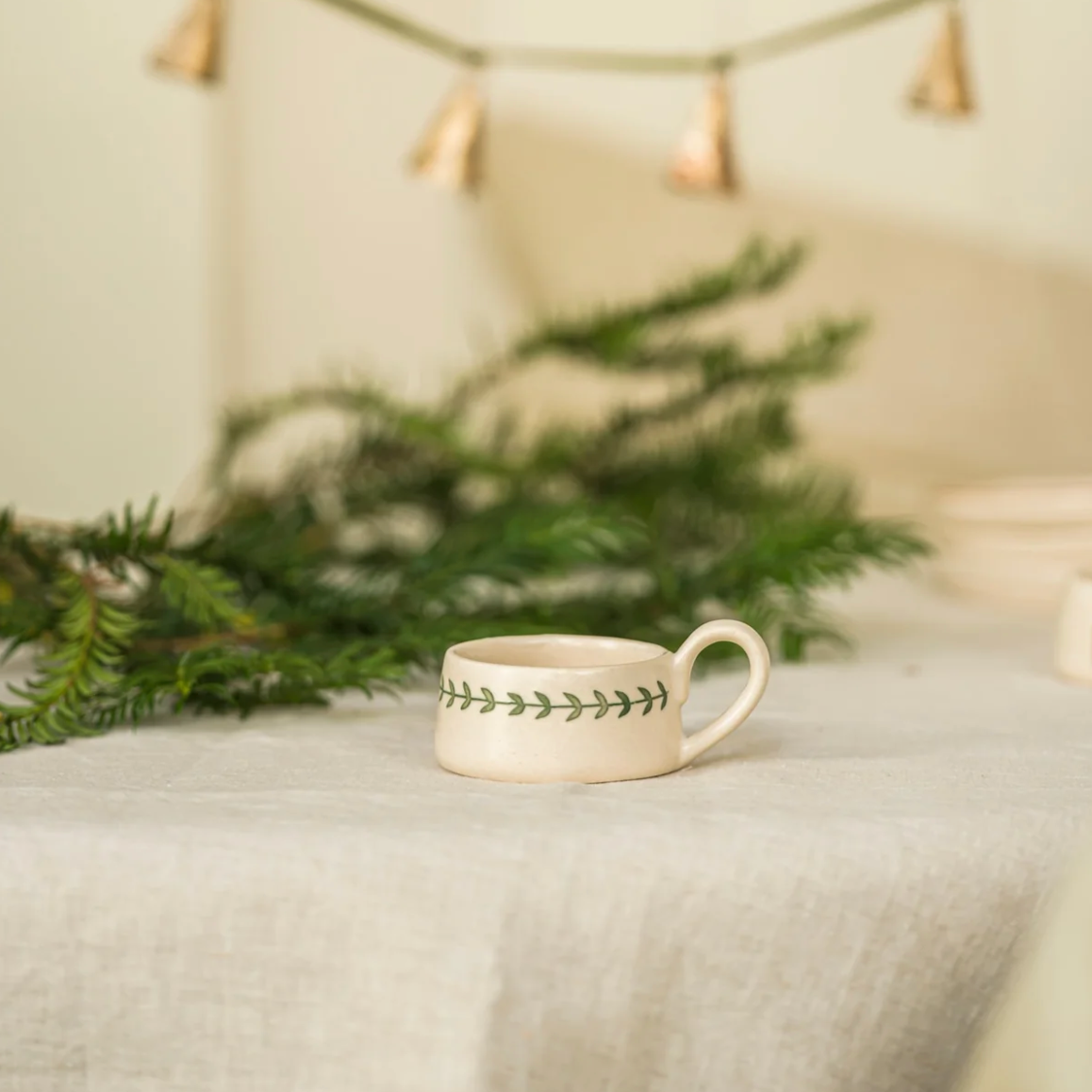 Crafted with a matte cream glaze and hand painted Nordic tree design, each ceramic tea light holder offers a softly unique finish. Perfect for winter gifting ranges, tabletop styling and seasonal homeware displays.