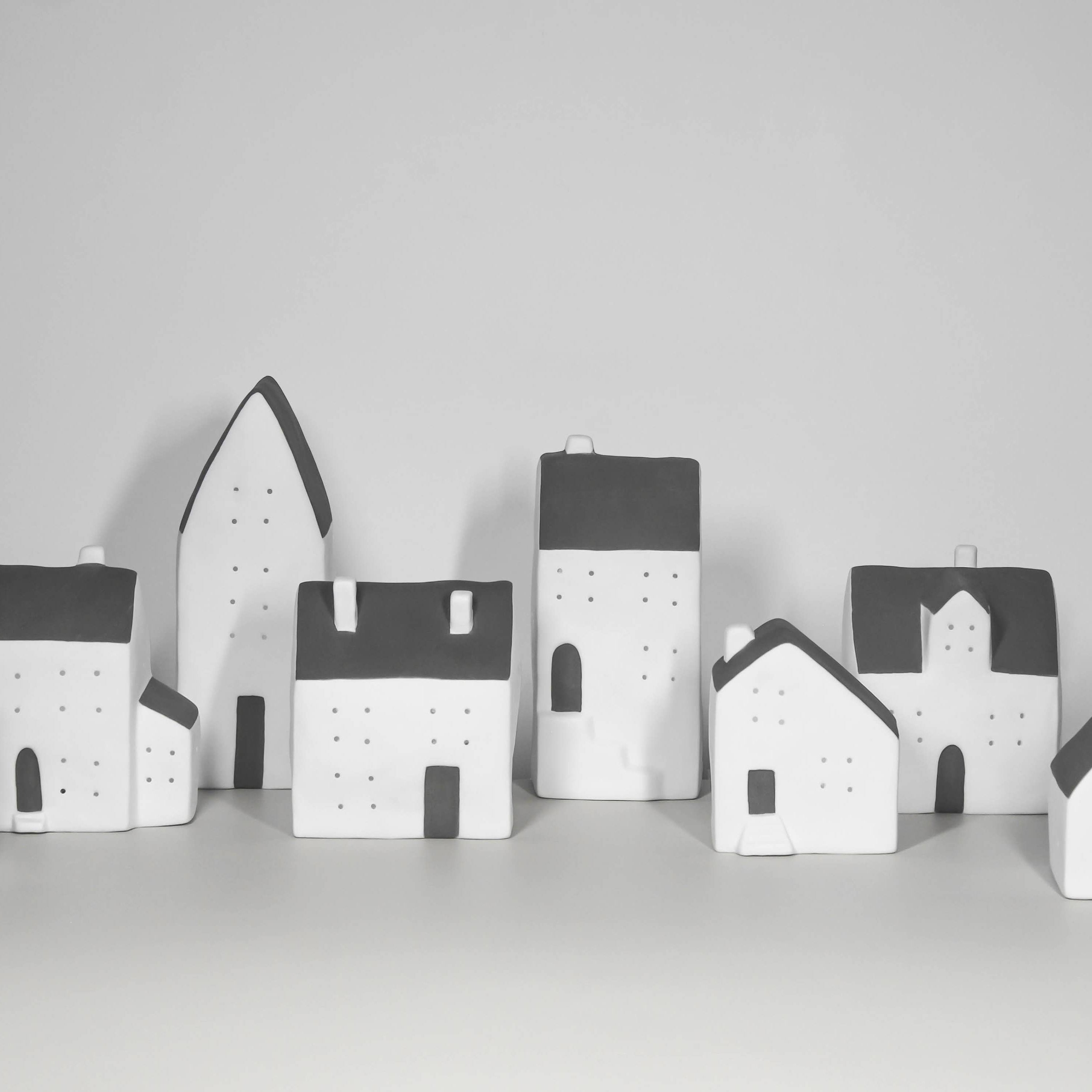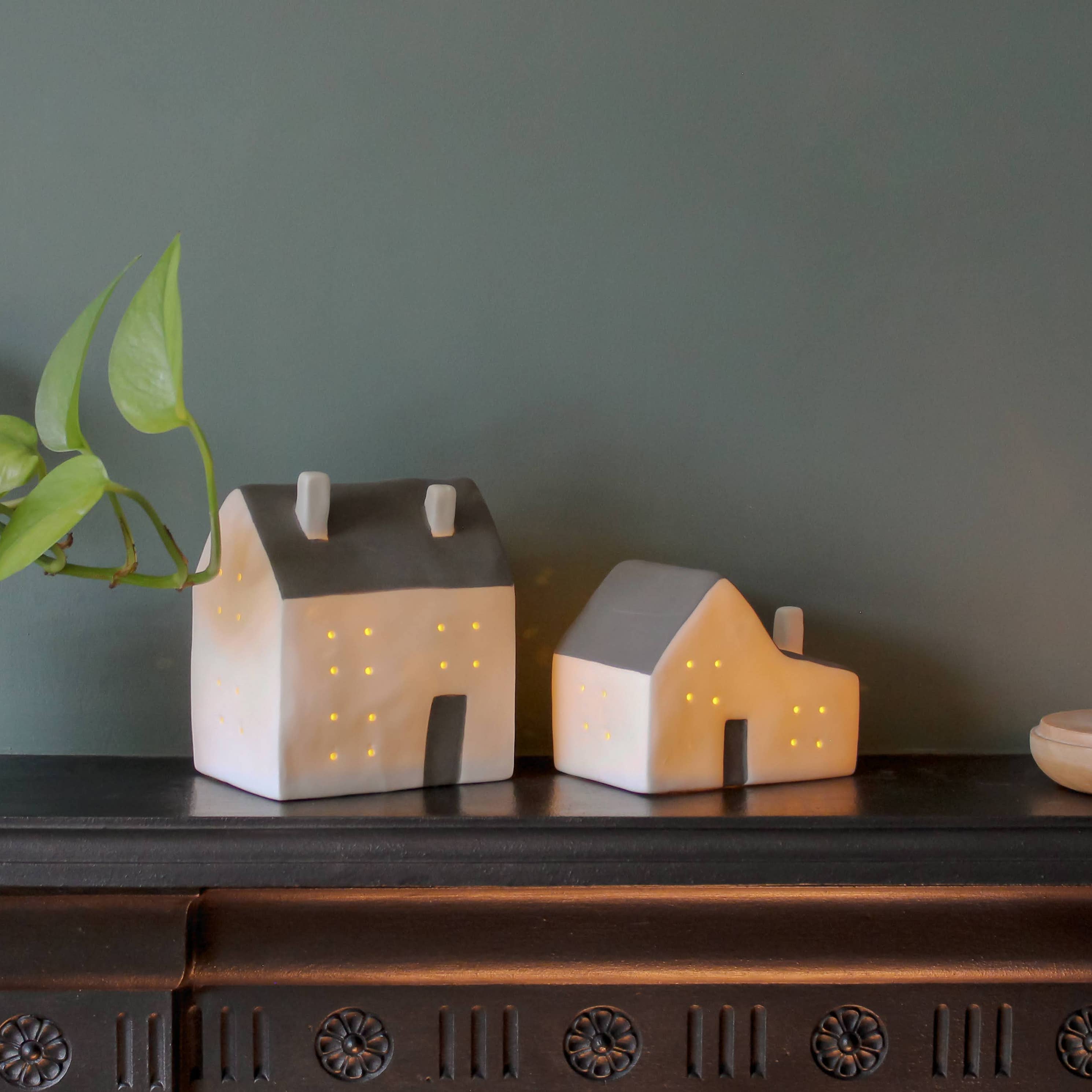 A LED ceramic house, a simple yet effective colour combination of white and grey.