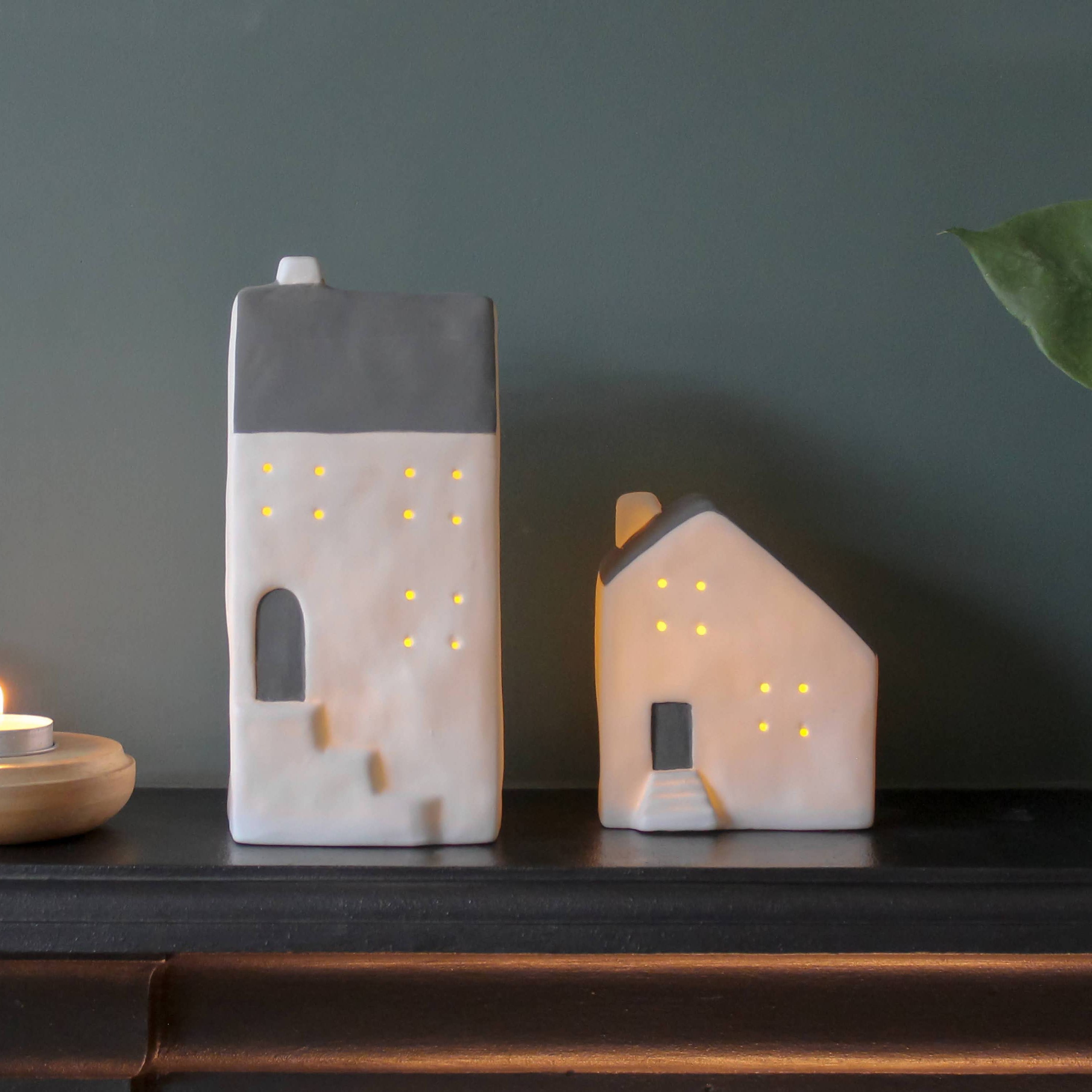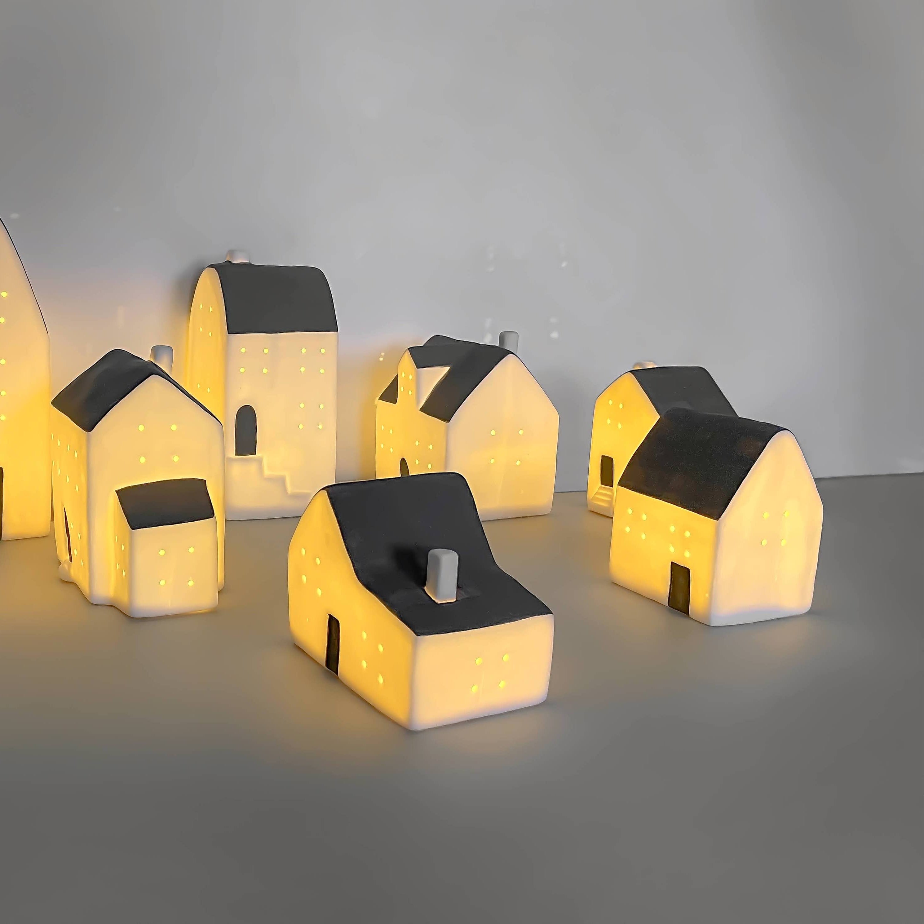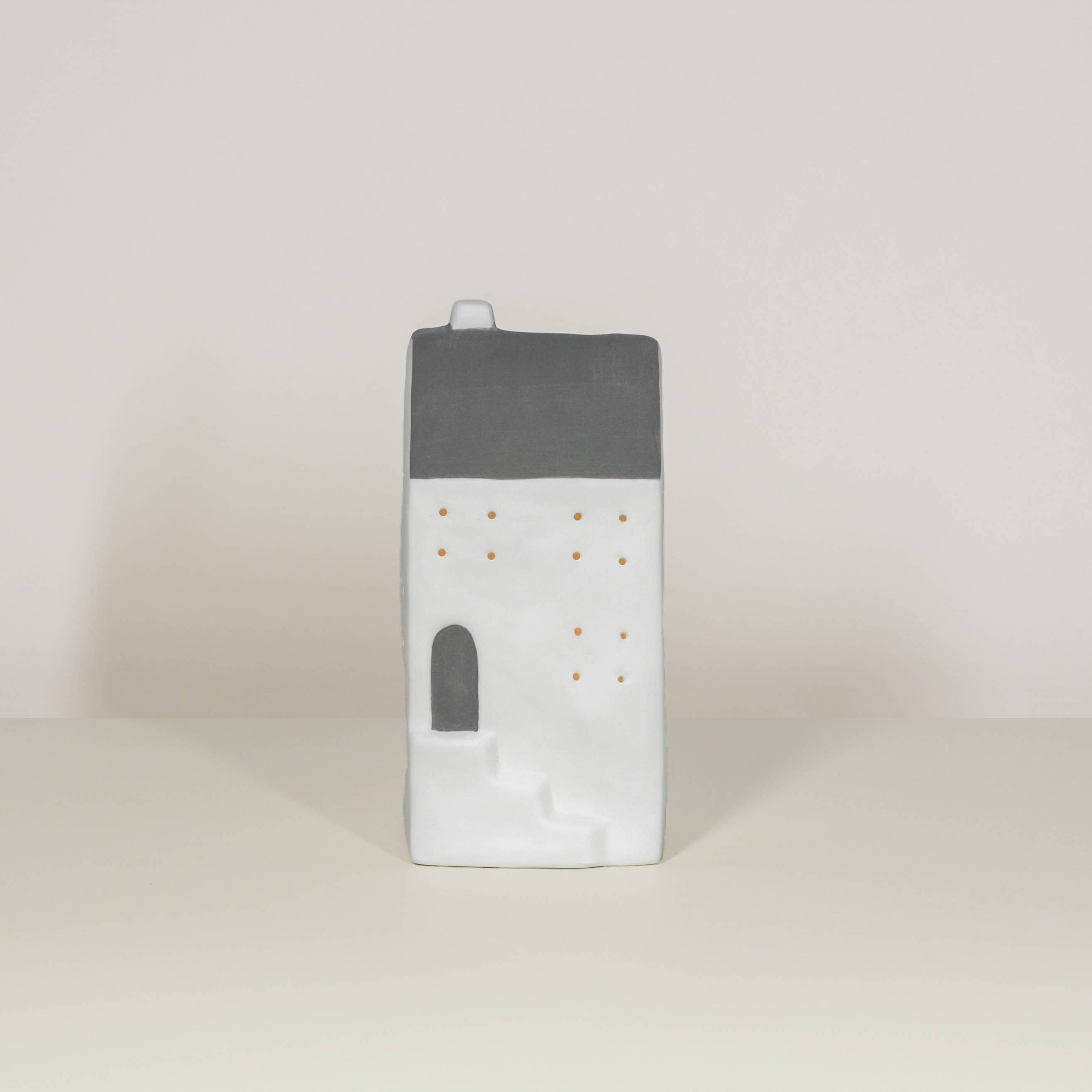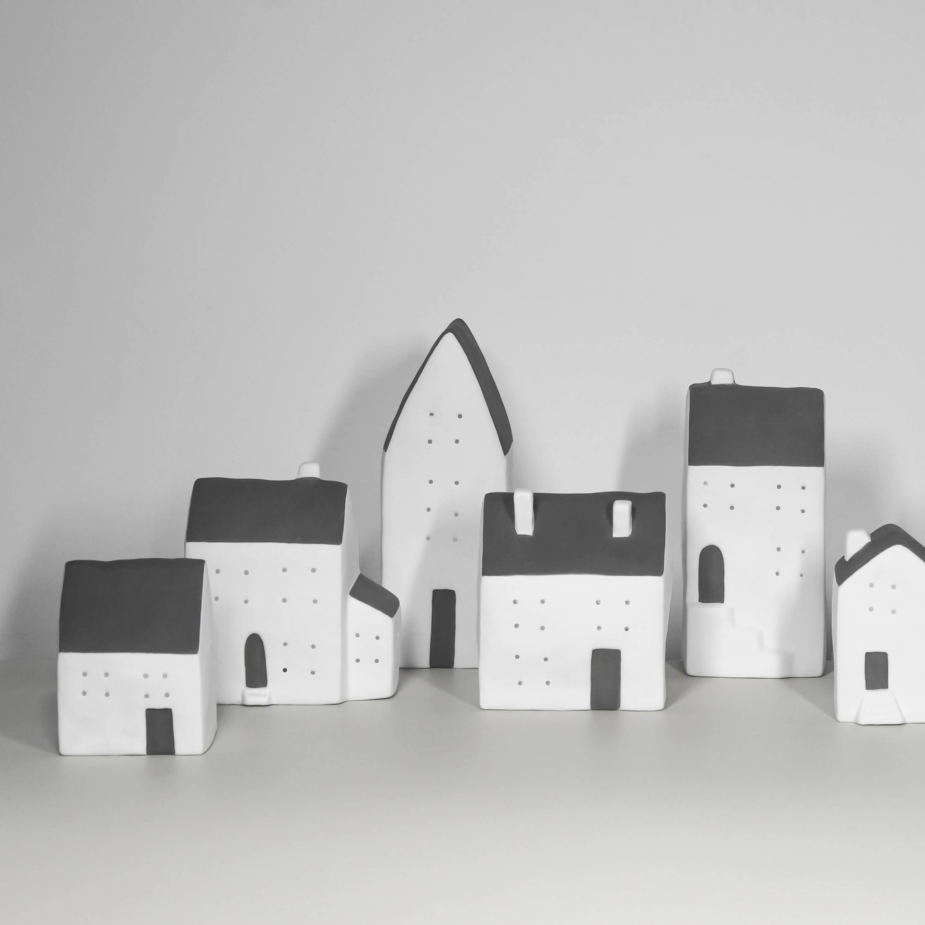 A LED ceramic house, a simple yet effective colour combination of white and grey.