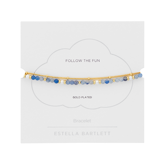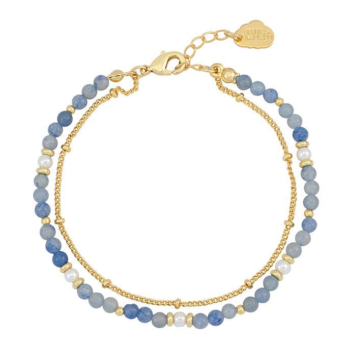 Pearl and Blue Aventurine Duo Bracelet - Gold