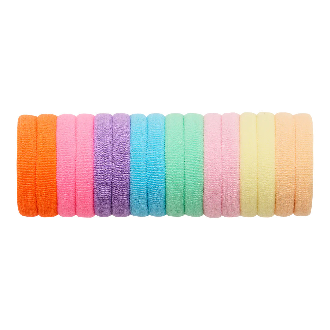 A bumper pack of smaller diameter, super soft and stretchy hair ties. Perfect for younger children with finer hair, now in a beautifully bright colour combo for spring and summer!