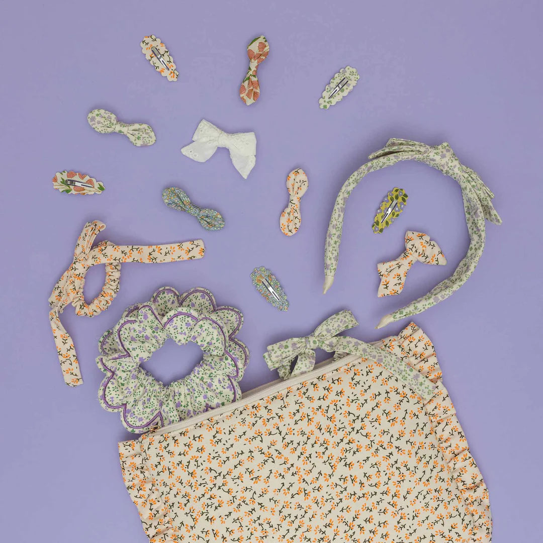 Our much loved Edie bow alice is back for Spring! Now in a delightful lilac ditsy print fabric - perfect for adding a little floral charm to any outfit!