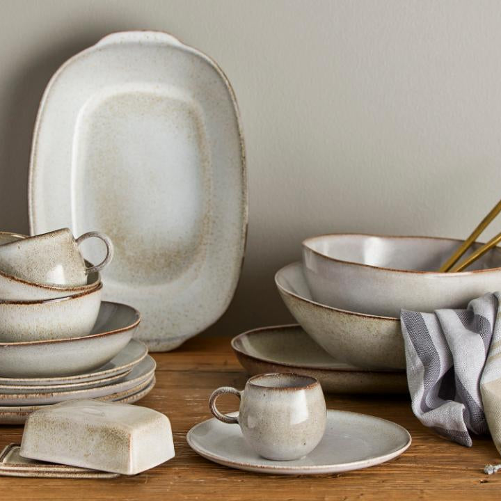 The Sandrine Cup from Bloomingville is made of stoneware in light grey and brown shades. It adds a natural touch to any table setting with its weight, uneven edges, and glossy, delicate glaze. The cup is handcrafted, which can lead to small variations in colour and shape. The cup is microwave and dishwasher safe.