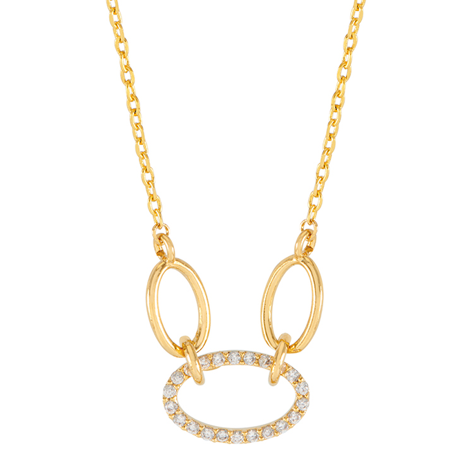 Shine bright with this silver-plated Oval Link CZ Chain Necklace. Featuring 3 oval links, one of which is studded with CZ stones, this necklace is an ideal gift for a loved one you are glad to be connected with.