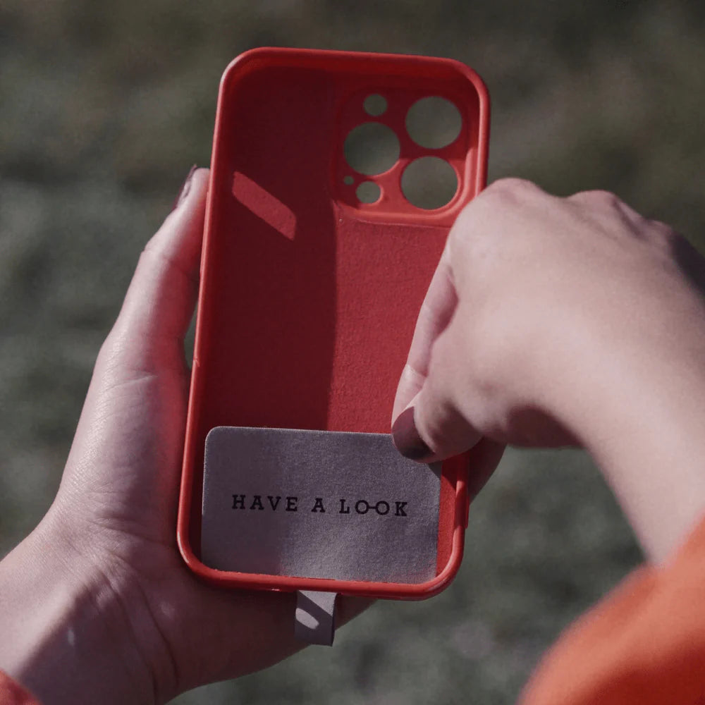 Practical and stylish phone strap in orange. ‘Hooked’ by Have A Look is an adjustable phone strap that keeps your hands free and your phone within easy reach. Perfect for busy days on the go – or whenever you want your phone ready without rummaging through your bag.