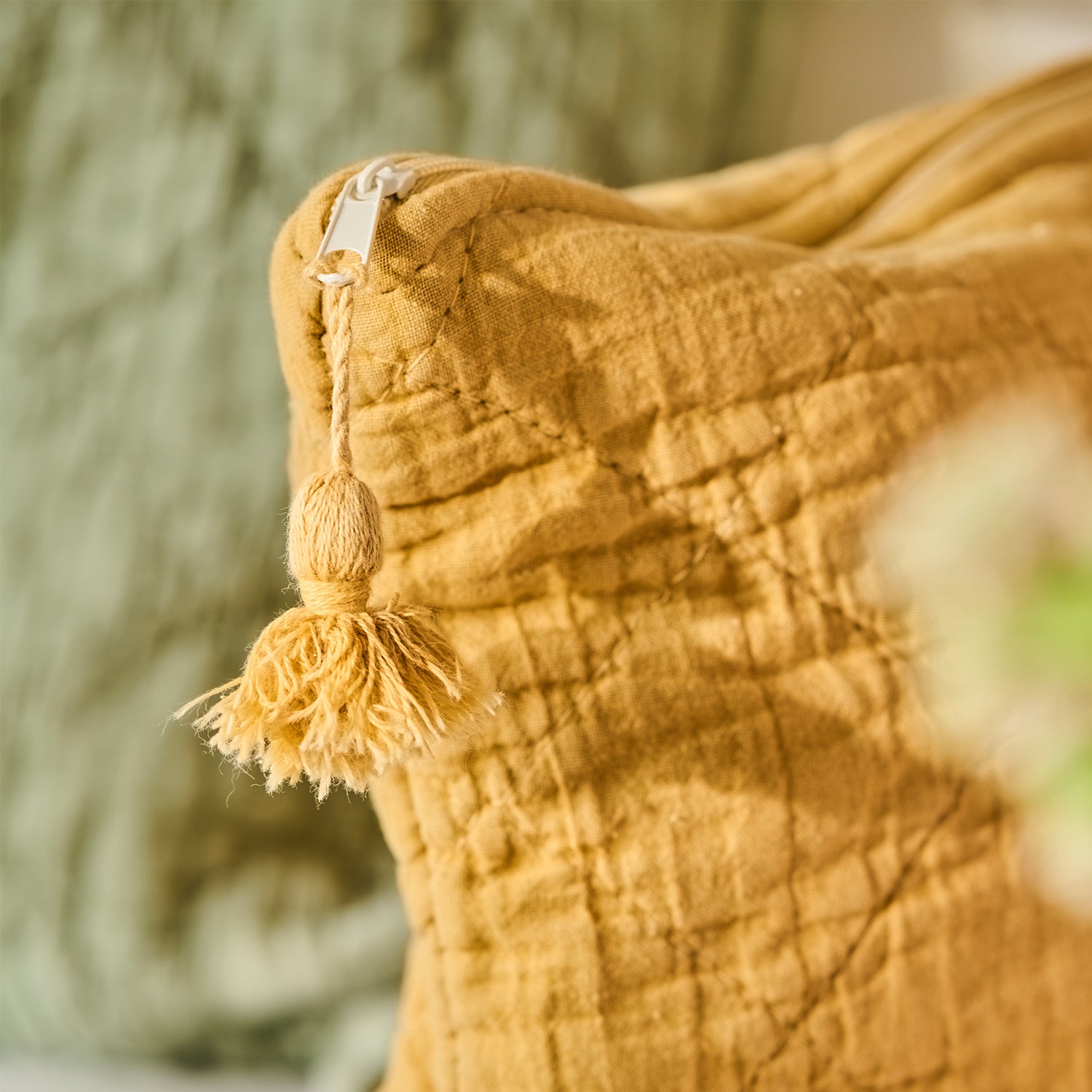 Quilted cotton toiletry bag with tassel zip pull. We absolutely love this bag, perfect for make-up, bathroom bits, and travel, but aesthetic enough for display too.