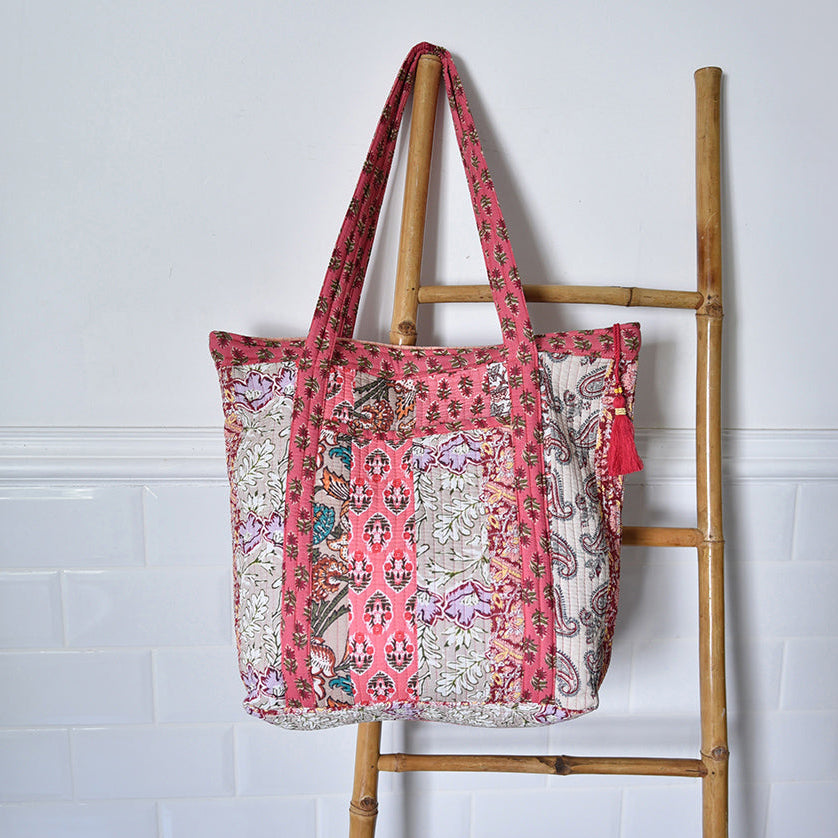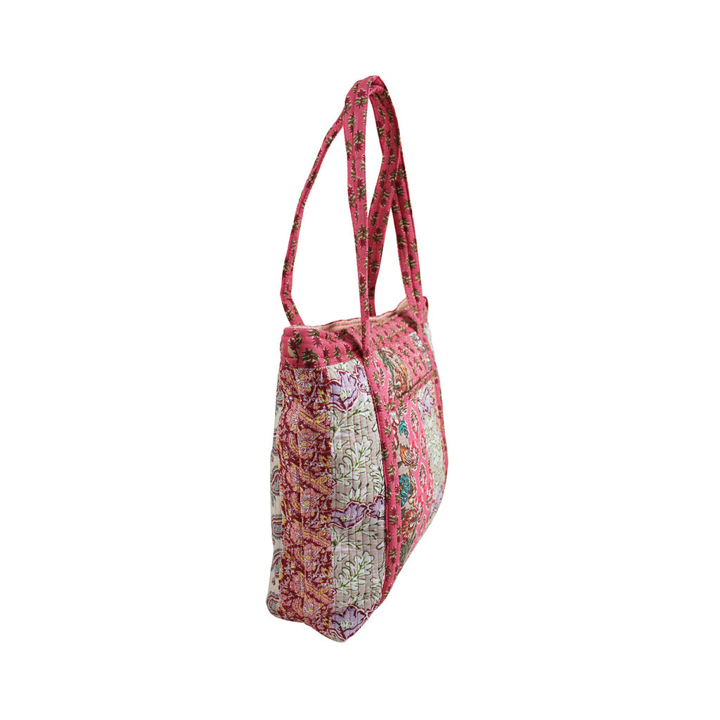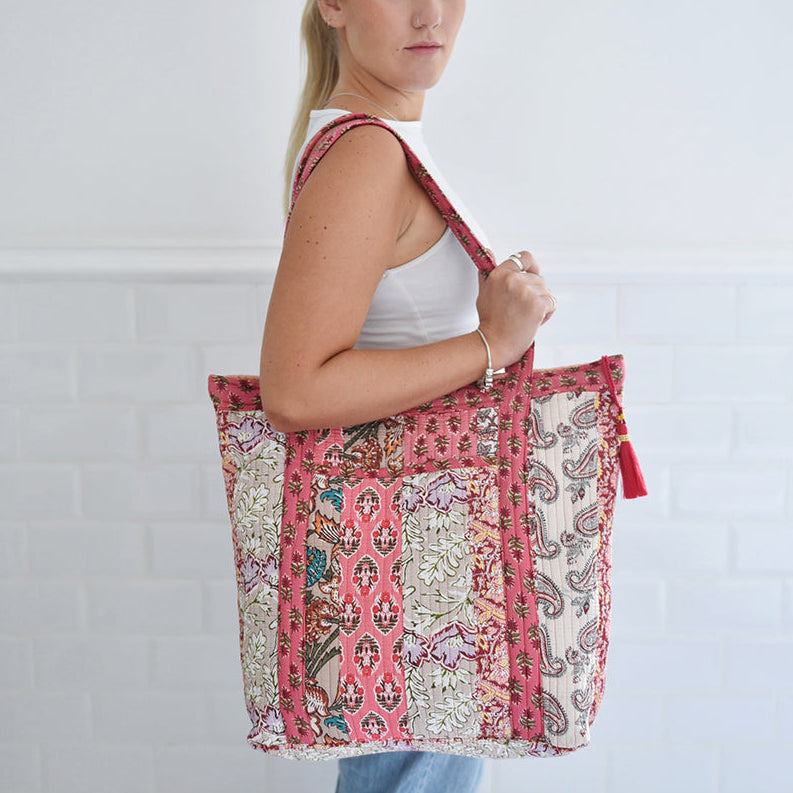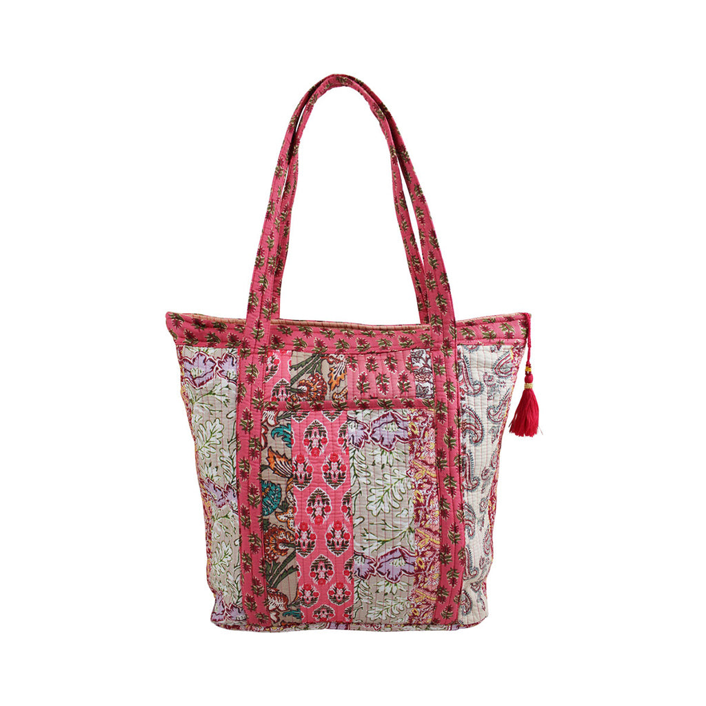 The new quilted, mixed fabric, zip-fastening tote bag is a great shape for the beach or around town. Roomy enough for your essentials and a bit of extra space for any purchase made along the way. This over-the-shoulder bag is fully lined and has an inside pocket to help keep your things organised.