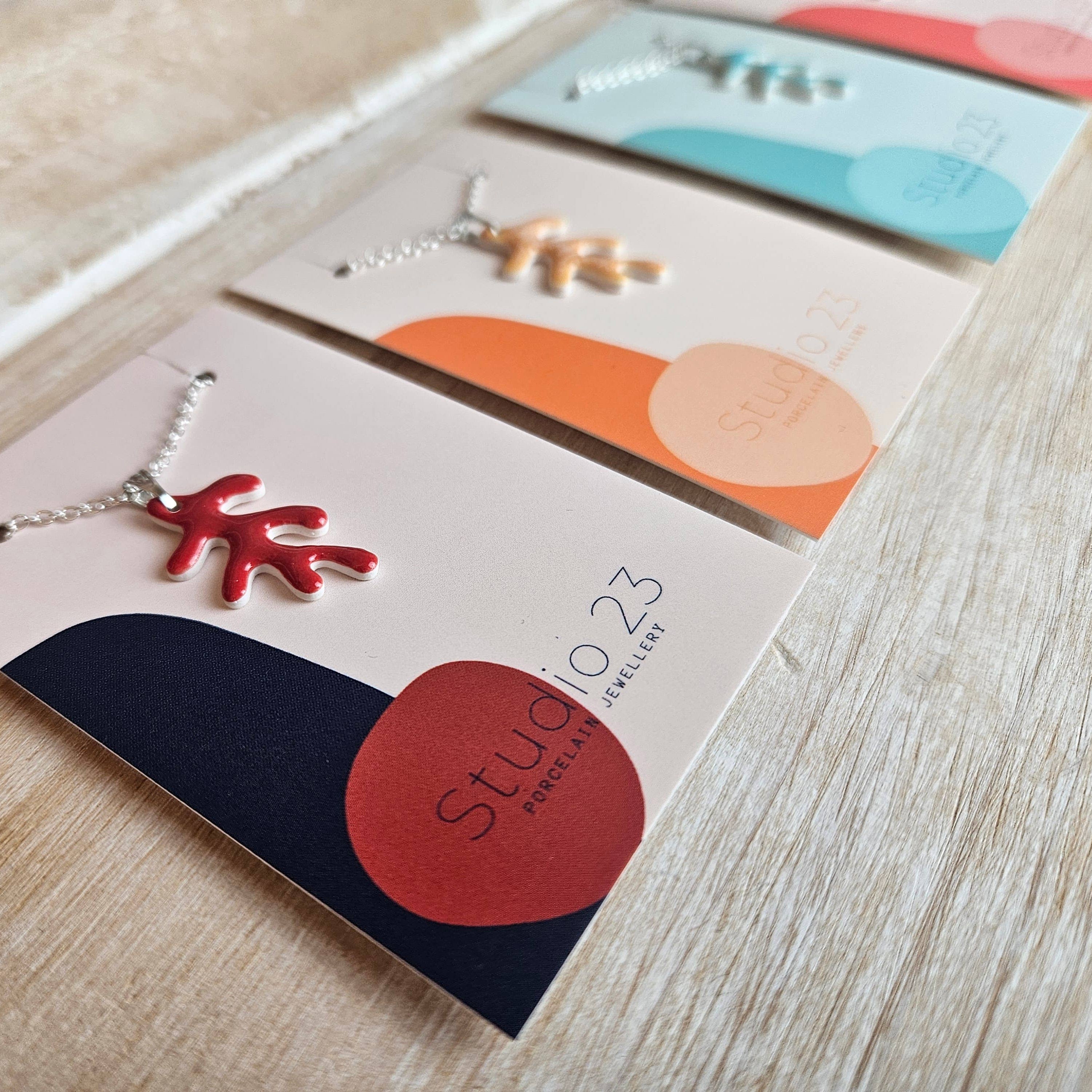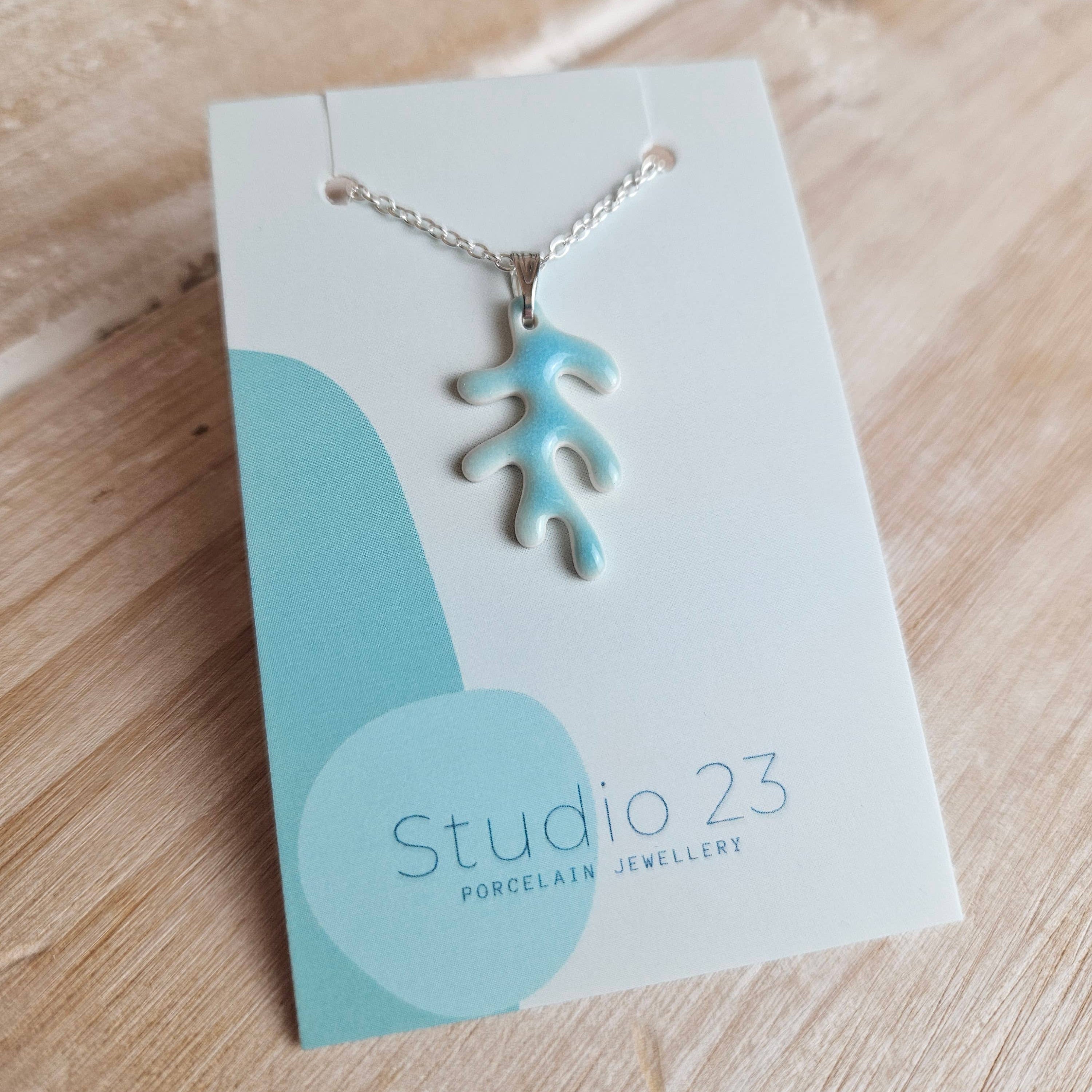 Coral shaped porcelain clay pendant glazed in a range of decorative pastel stoneware glazes.