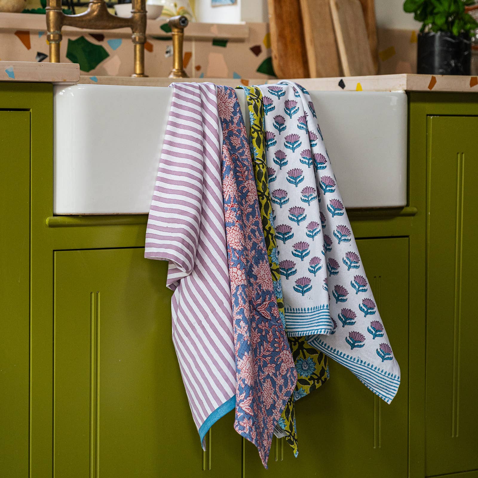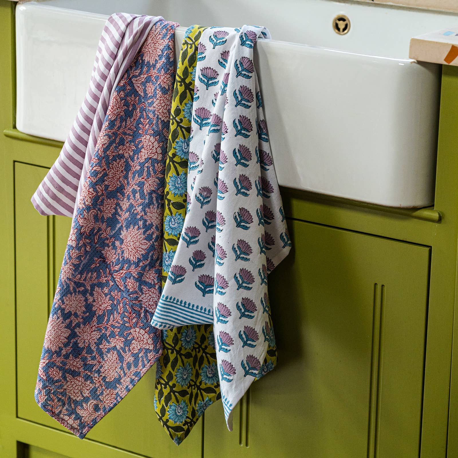 Bring a touch of luxury to the everyday with this block printed Lotus Flower tea towel. Comes with a handy loop hook and is block printed on premium cotton.