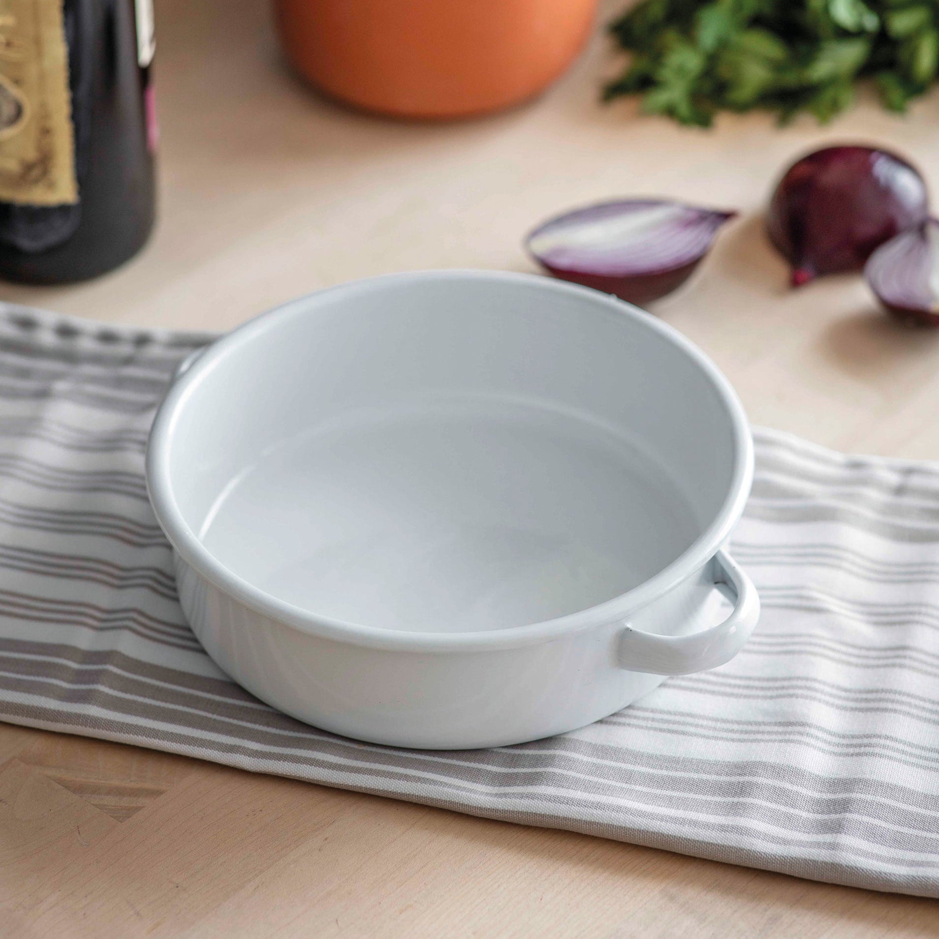 The colder months call for hearty homemade meals served to the table for all to enjoy. A generous portion for one or for two to share, this Pie Dish is made from timeless white enamel complete with two handles for easy carrying.