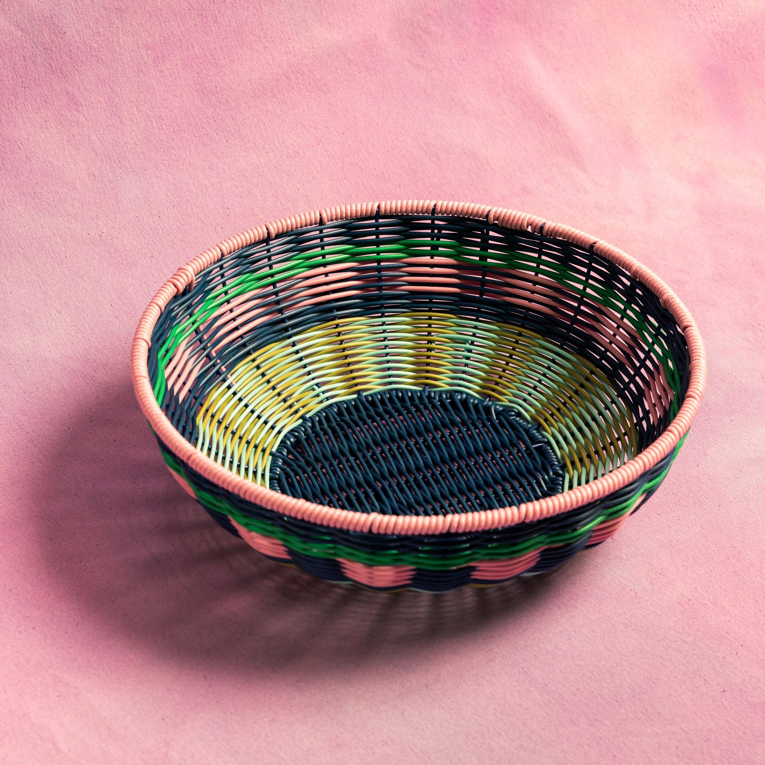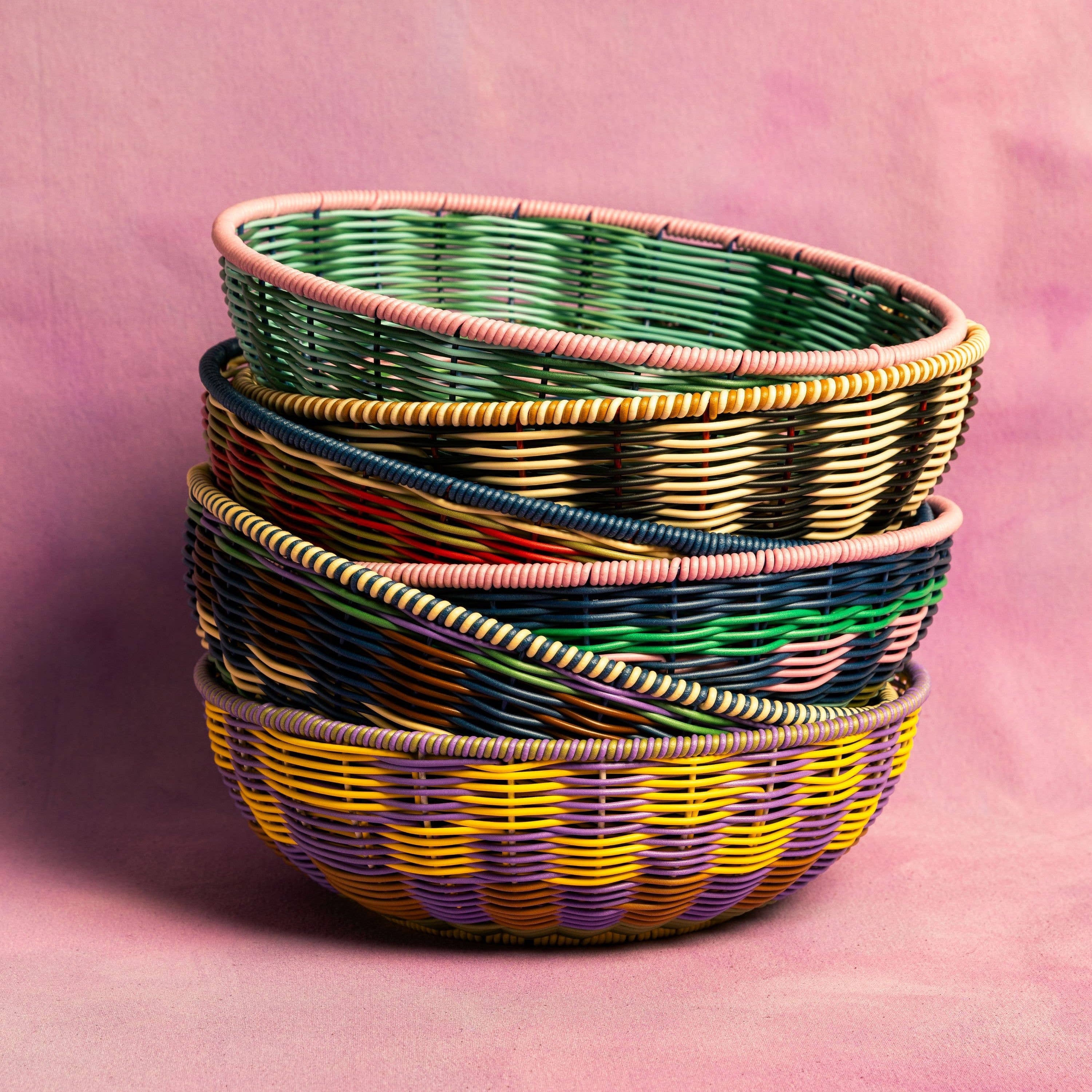 Each bowl is hand woven from coloured polypropylene, creating unique patterns that celebrate joyful design and everyday functionality.