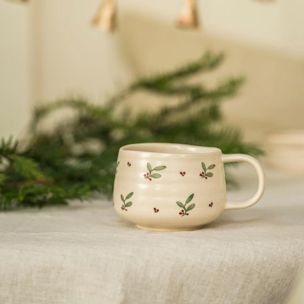 Crafted with a matte cream glaze and hand painted holly details, each ceramic mug has a gently unique finish. The softly rounded shape and delicate painted sprigs make it an easy addition to festive gifting ranges, winter tabletop collections and seasonal homeware displays.