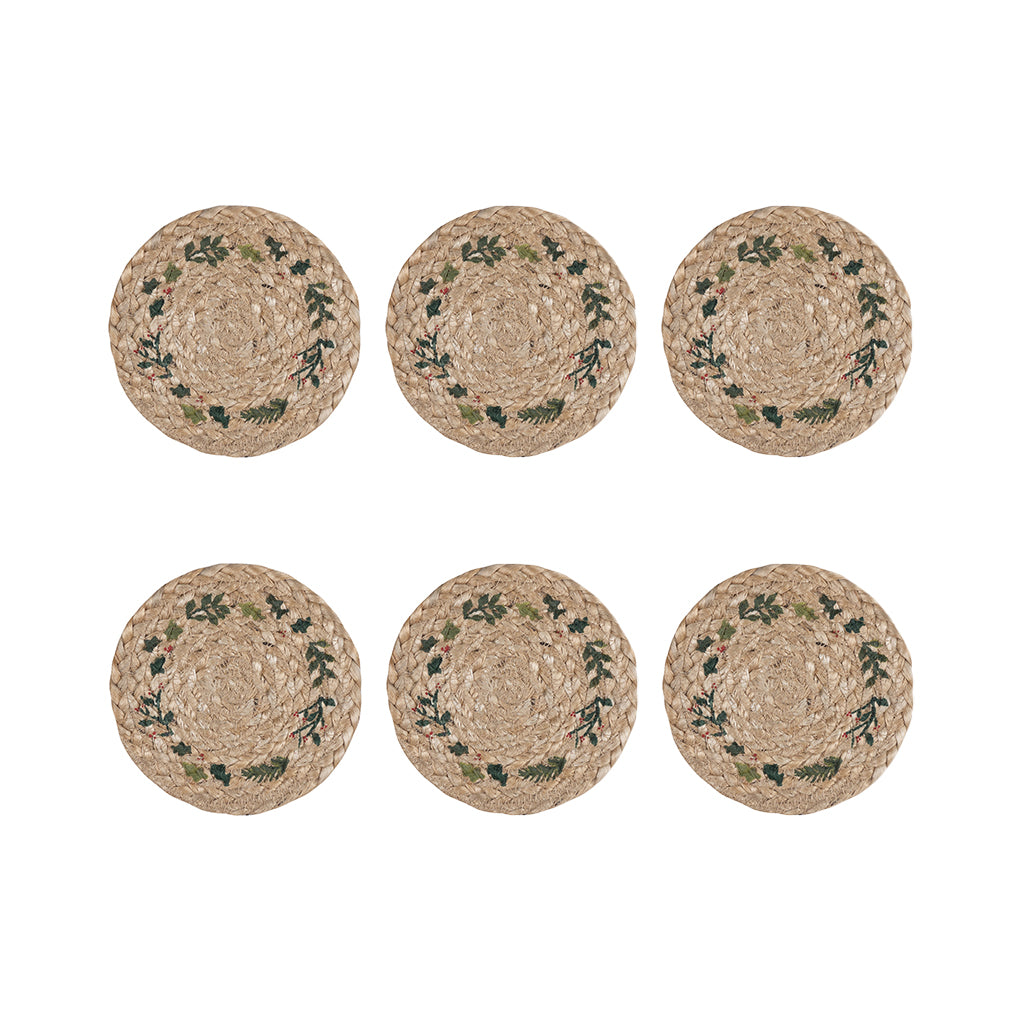 Coasters in a Basket - Set of 6 Christmas (Natural)