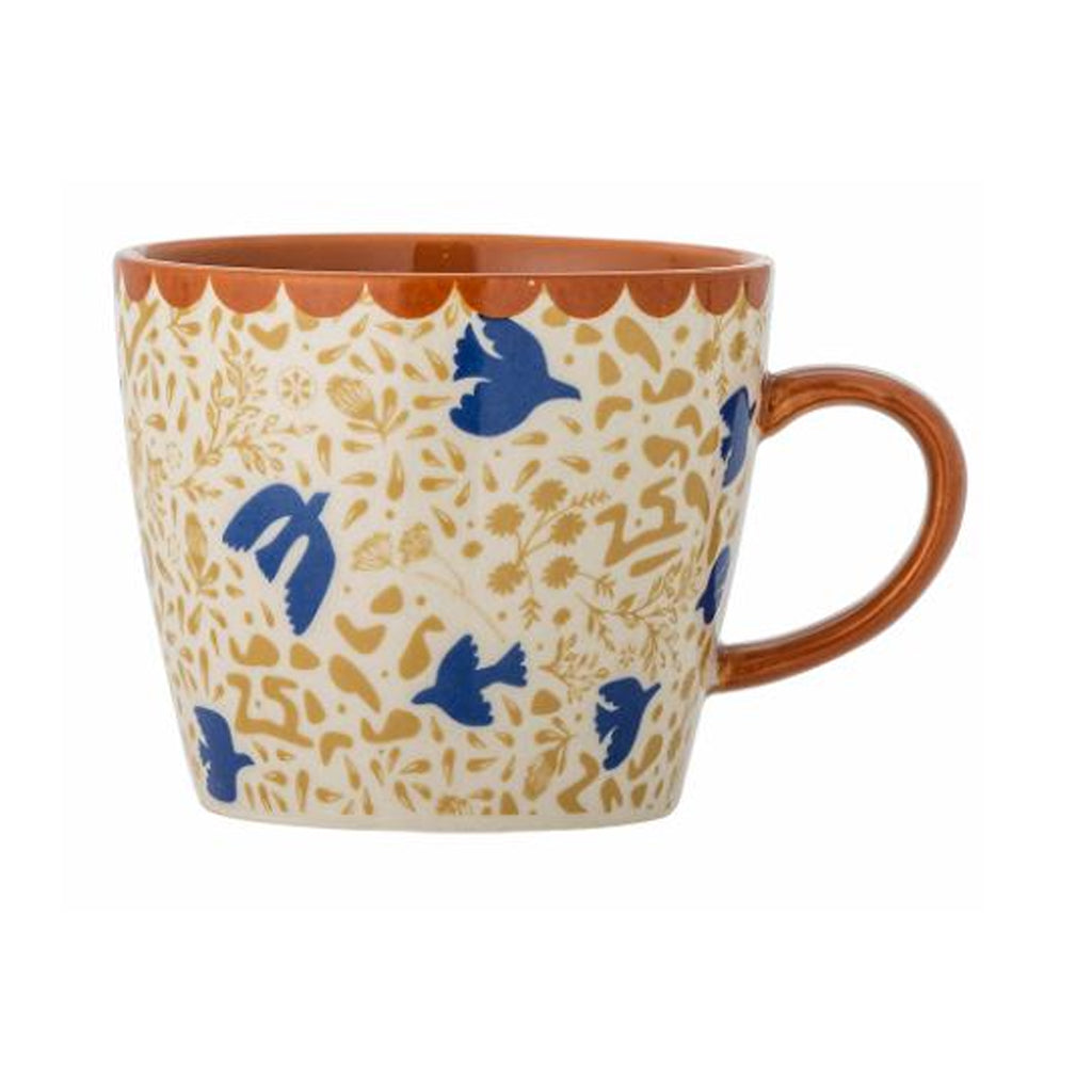 Crafted from durable stoneware, this cup features a vibrant graphic design in cozy orange tones. Its smooth, rounded form offers a soothing and stylish appeal, making it an ideal choice for enjoying your favourite coffee or tea.