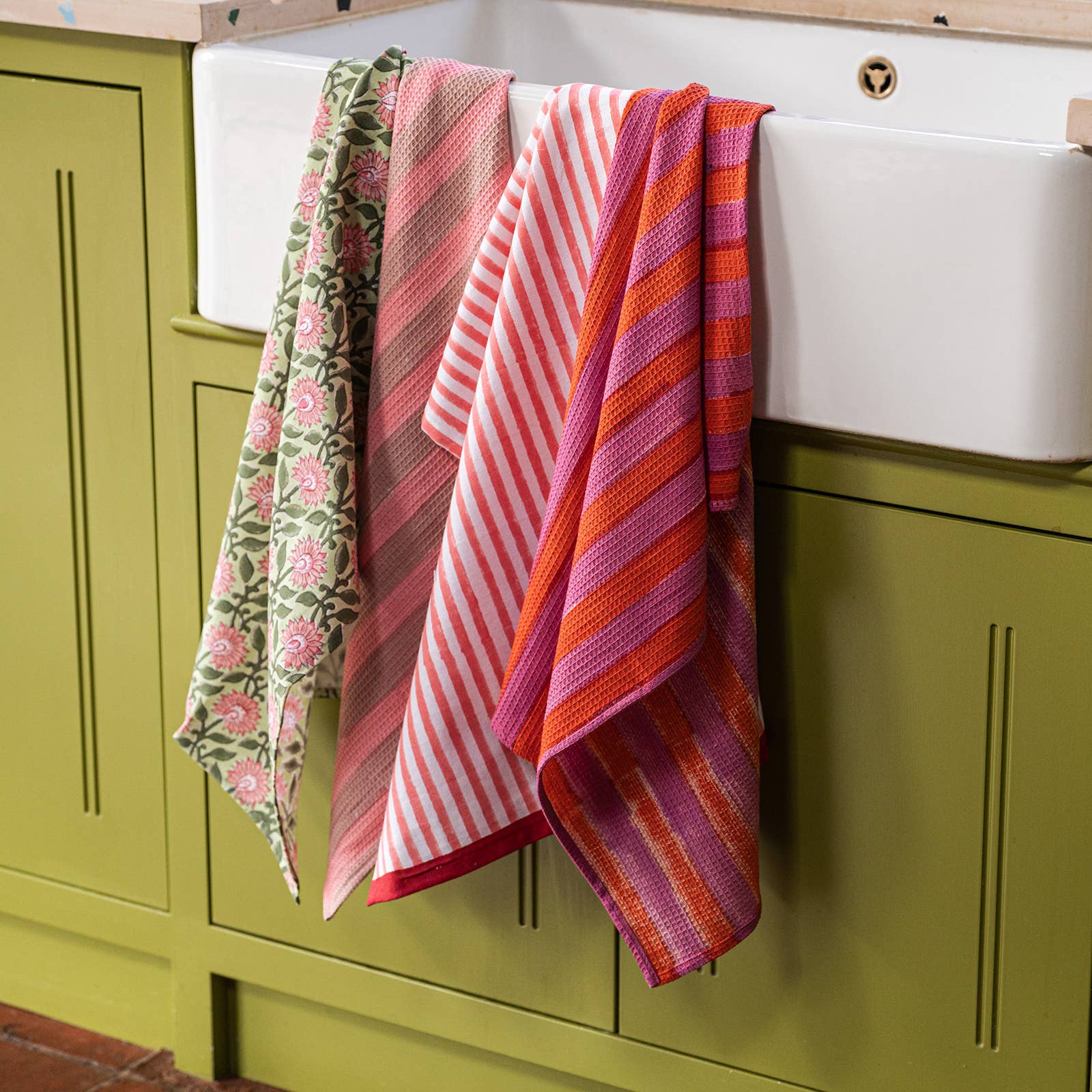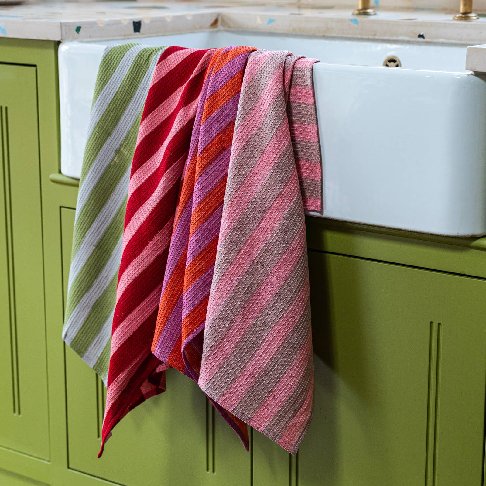 Crafted from soft, absorbent waffle cotton, this wide stripe tea towels are thoughtfully block printed by hand, celebrating traditional techniques and considered design.