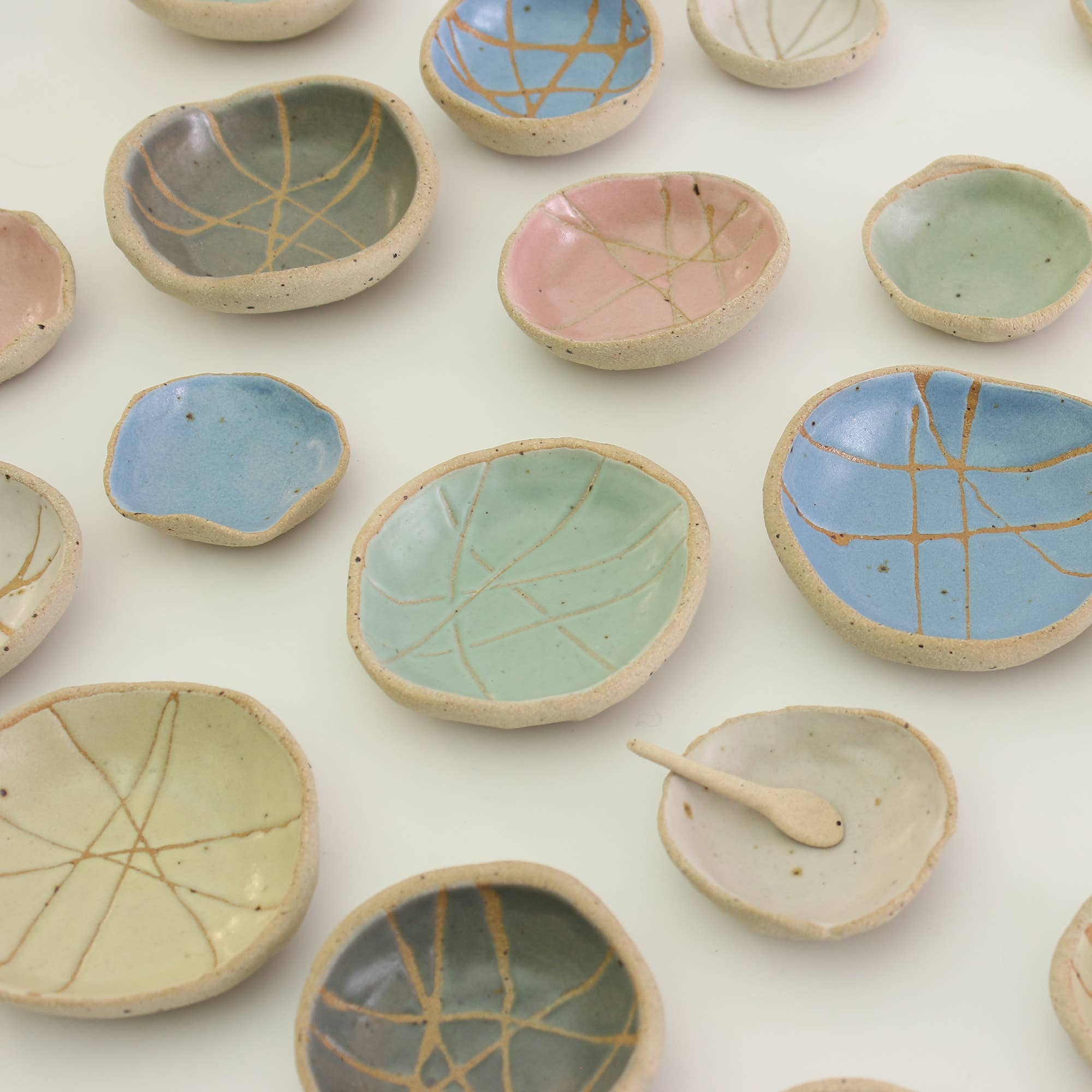 Wonky and wonderful, each bowl is made by hand from the shaping of the clay to the decoration with their unique glaze colours. The raw flecked clay exterior and unique organic design gives every one a sophisticated feel. The wonky bowls come in three different sizes. Simply use as pieces of decor, a dish for your jewellery and keys or as condiment dishes for sauces and nibbles. They also make perfect salt and pepper pots with the addition of a little handmade spoon.