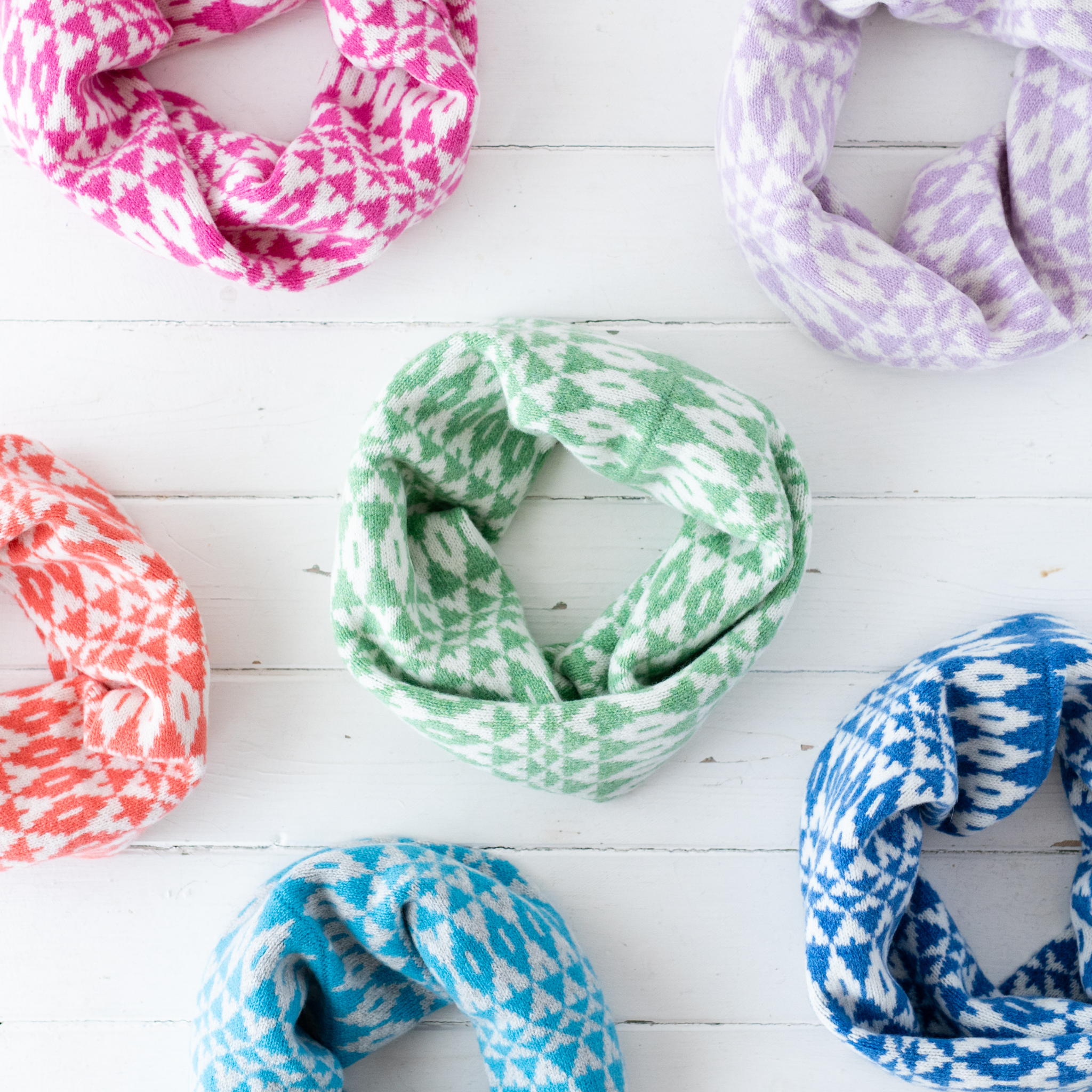Stylish snood in their Mirror pattern handmade using a soft, rich lambswool this makes the perfect accessory for autumn/winter.