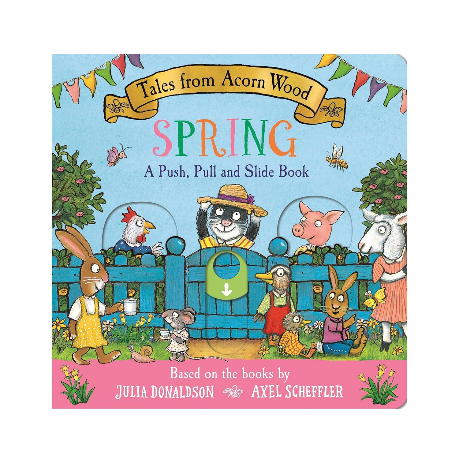 How are Rabbit, Cat, Hen and all their animal friends celebrating the Spring? Push, pull and slide the tabs to find out. Join Tortoise on a sunny bike ride, help Fox pick a bunch of lovely daffodils, and enjoy a picnic in the meadow with Pig, Badger and friends. Features a short, simple text based on the Tales from Acorn Wood books and lots of springtime things to spot.