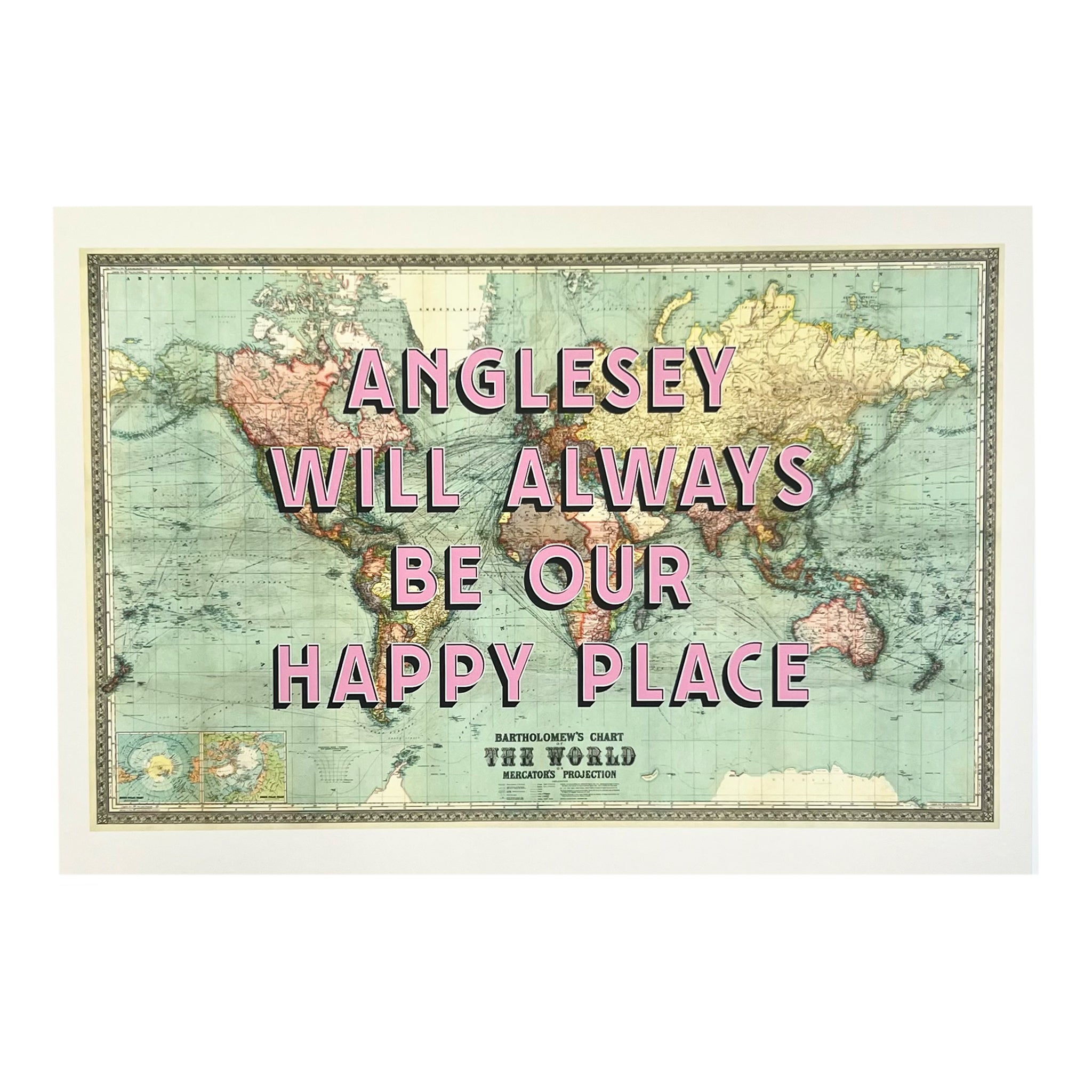A2 Wall Art - Our Happy Place - World Map Anglesey
